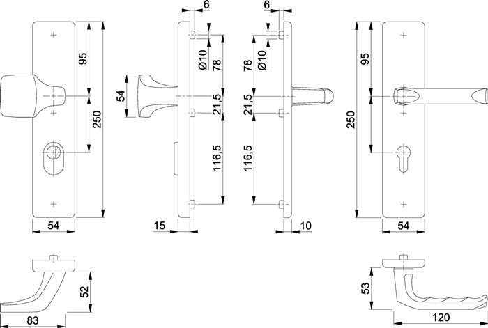 HOPPE Garniture de protection London 61G/2222ZA/2210/113 aluminium F4 ( 3000209050 )