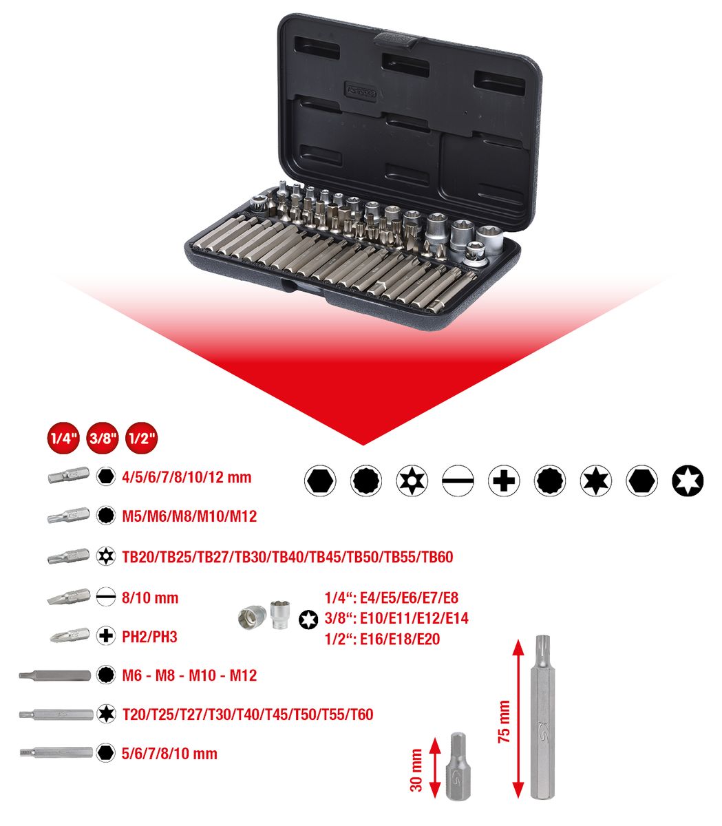 KS TOOLS 1/4'+3/8'+1/2' Coffret de douilles et douilles tournevis Torx, 57 pcs ( 911.4305 )