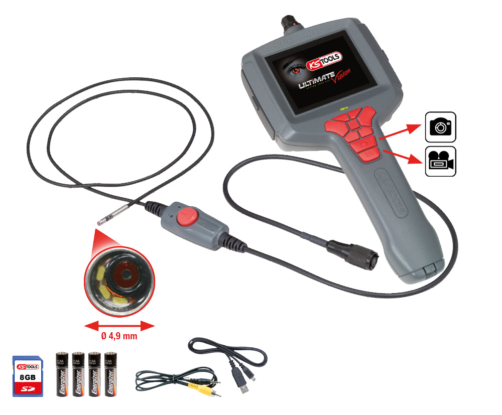 KS TOOLS Coffret de vidéoscope ULTIMATEvision MASTER, 6 pcs flexible, 1 m, avec sonde Ø 4,9 mm ( 550.7049 )