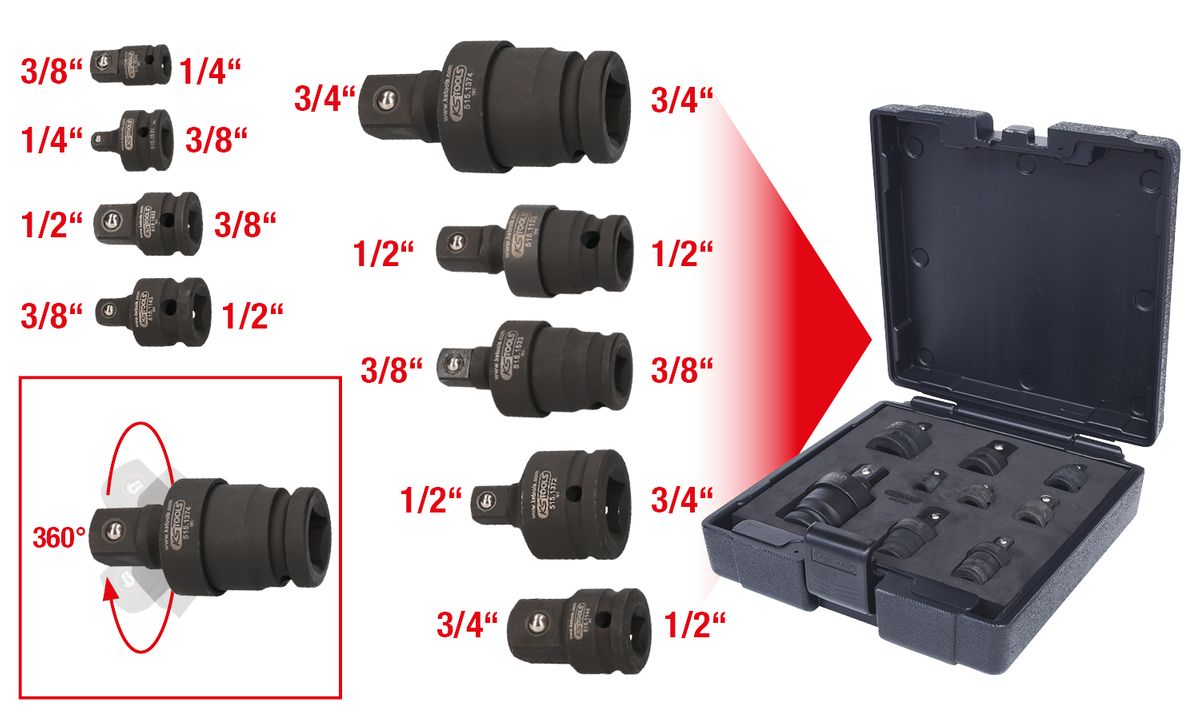 KS TOOLS Jeu d'augmentateurs/réducteurs à chocs, 9 pcs ( 515.0100 )