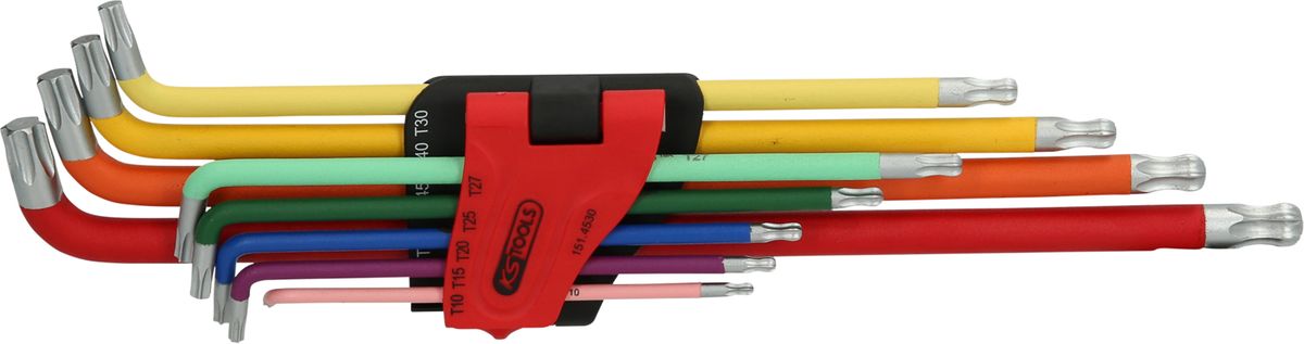 KS TOOLS Jeu de clés mâles coudées Torx à tête sphérique, extra longues et coudées à 108°, 9 pcs ( 151.4530 )