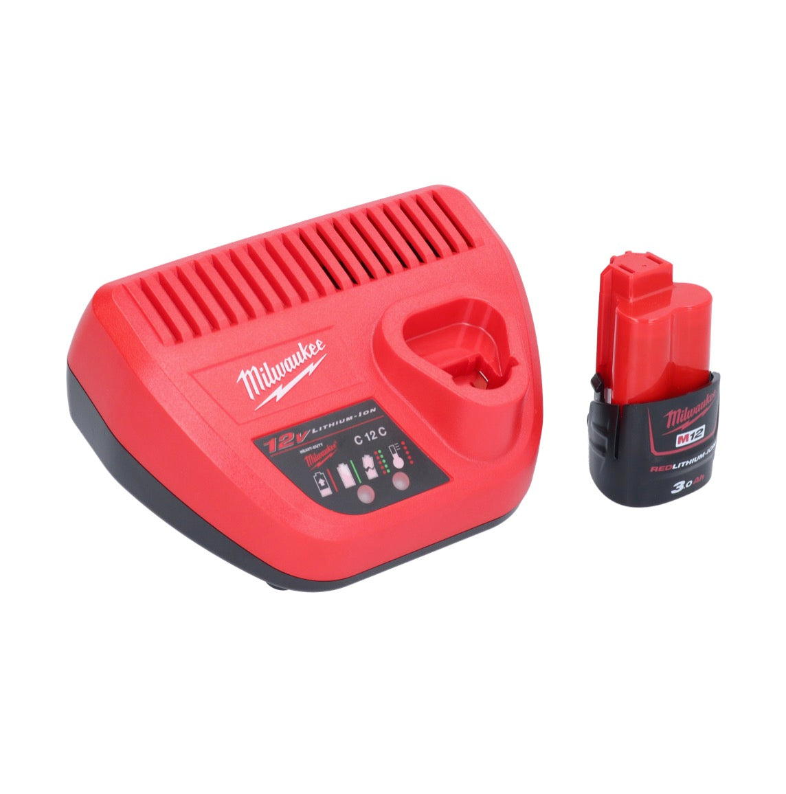 - 1x batterie Milwaukee M12 B3 3,0 Ah