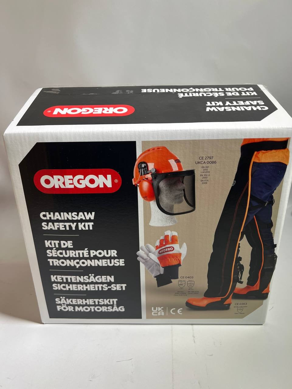 Oregon Kettensägen Schutzausrüstung Set ( 574742A ) mit Schutzhelm / Beinschutz und Handschuhe - Unvollständig