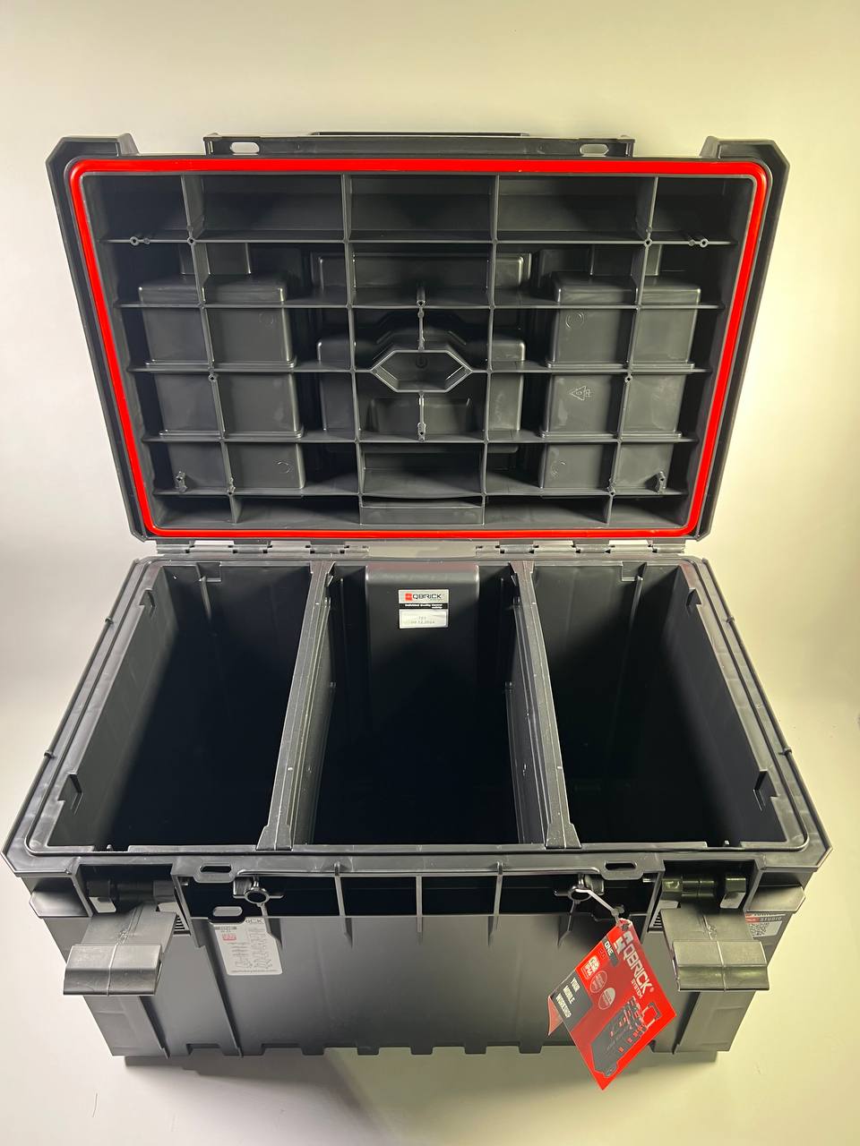 La ONE 450 est une mallette à outils avec une très grande capacité de 52 litres. Elle est ainsi en mesure de contenir des outils électriques et manuels de grande taille. Deux compartiments réglables permettent d'organiser l'intérieur de la boîte. Chaque boîte est équipée d'un joint flexible qui offre une protection totale contre la pénétration de la poussière et de l'eau (IP66). Il est équipé en série de deux cloisons réglables qui permettent d'organiser parfaitement l'espace à l'intérieur de la boîte. La version professionnelle comprend des couvercles équipés de deux organisateurs spacieux avec des séparateurs mobiles et des feuilles de polycarbonate résistantes aux chocs. La structure renforcée du couvercle et du corps garantit une grande capacité de charge (50 kg) et résiste à une pression allant jusqu'à 120 kg, ce qui permet de créer des plateformes de travail confortables. La version 2.0 de la ligne de produits ONE est une nouvelle génération de coffres à outils et d'organisateurs au design renforcé. L'adaptation supplémentaire des boîtiers aux inserts filetés M8 permet d'adapter le système aux besoins de l'utilisateur.