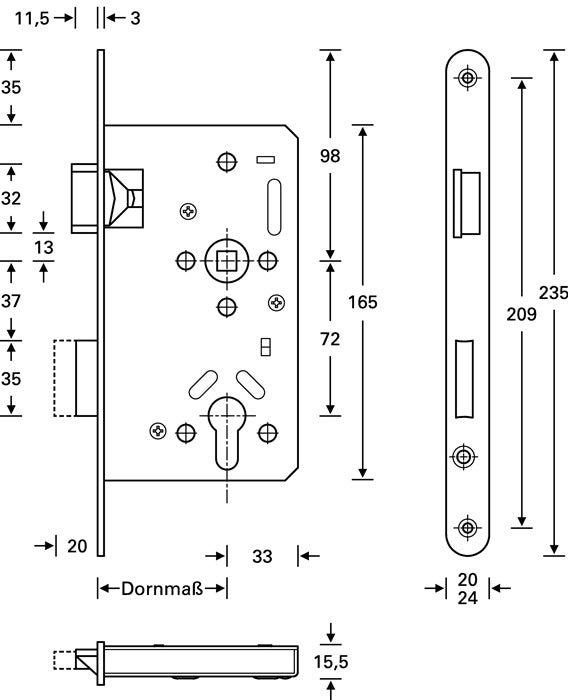 SSF Serrure à encastrer anti-panique Série 20 APE Fonction anti-panique E arrondie ( 3000252878 )