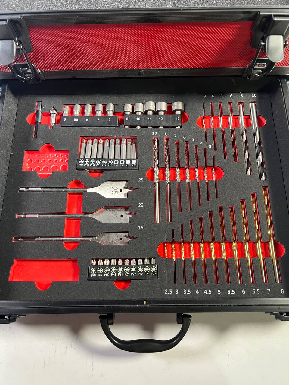 - 11x Forets métalliques (2,5 mm / 3 mm / 3,5 mm / 4 mm / 4,5 mm / 5 mm / 5,5 mm / 6 mm / 6,5 mm / 7 mm / 8 mm)