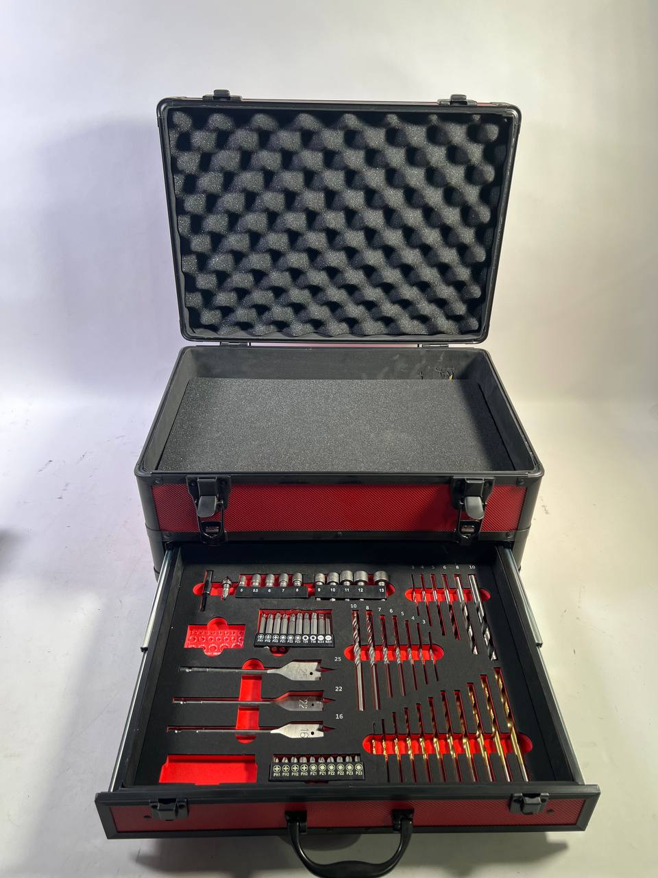 Le coffret de transport en aluminium TX de Toolbrothers offre suffisamment d'espace pour un appareil (tel qu'une visseuse à percussion), un chargeur et jusqu'à deux batteries. Le set d'embouts et de forets de 70 pièces contenu dans ce coffret est parfait pour effectuer tous vos travaux de perçage et de vissage. Il est constitué de différents types d'embouts, de fraises, de douilles et de forets. Que ce soit pour le bois, le métal ou la pierre, ce coffret contient une grande variété de forets de toutes les tailles courantes. Son design de qualité promet une longue durée de vie et est en outre très esthétique. Il est doté d'une poignée en caoutchouc qui vous assure une prise en main facile, même lorsque vous portez des gants. Ses fermetures métalliques sont robustes et durables. Le Toolbrothers TX dispose également d'inserts dans son fond et dans son couvercle, qui garantissent un transport en toute sécurité de vos appareils. Avec lui, vos outils et accessoires sont rangés en toute sécurité dans un seul et même coffret.