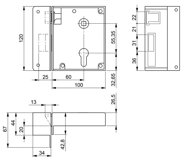 AMF Serratura a cappuccio 2 DIN destra PZW ( 3311021051 )