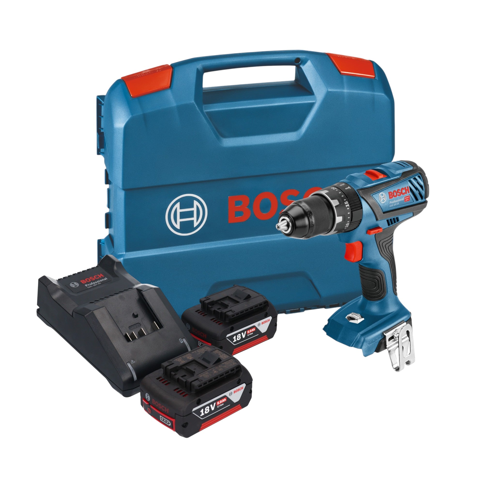Bosch GSB 18V-28 Professional Akku Schlagbohrschrauber 18 V 63 Nm + 2x Akku 5,0 Ah + Ladegerät + L-Case