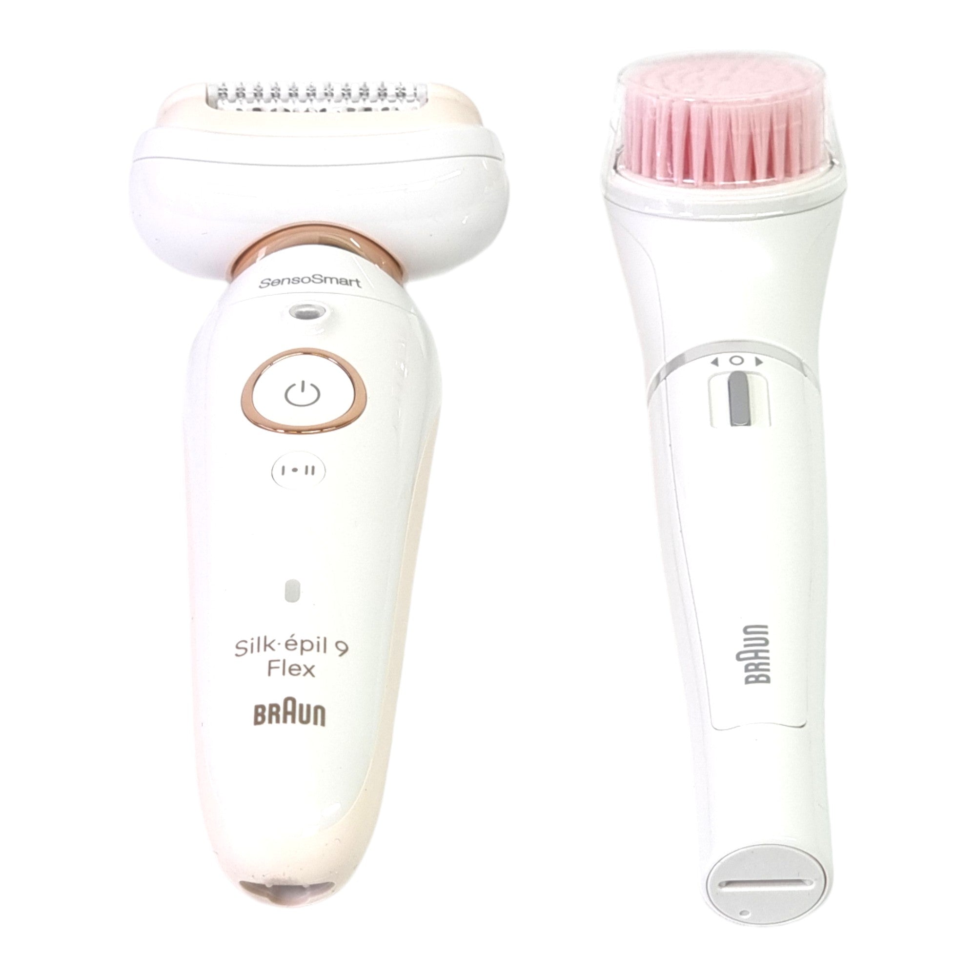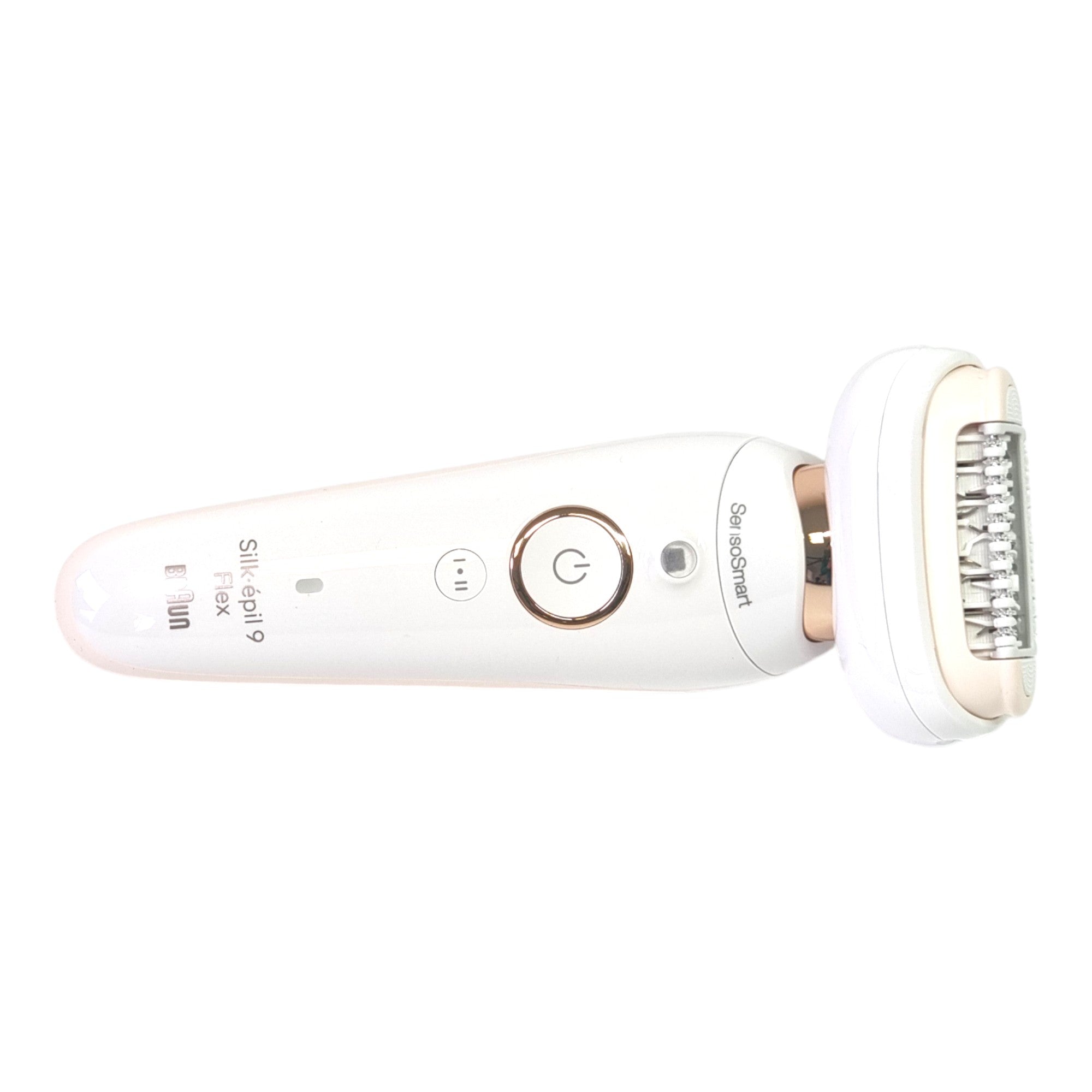 BRAUN Silk-épil 9 Flex 9-100 set di bellezza epilatore da donna / depilatore + spazzola per la pulizia del viso FaceSpa + 9 accessori + borsa bianco / oro