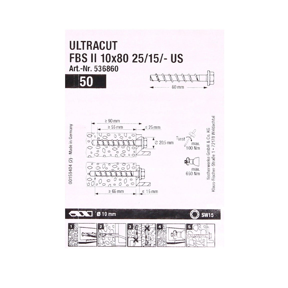 Fischer ULTRACUT FBS II Betonschrauben 10x80mm 25/15/- 100 Stk. Sechskantkopf SW15 ( 2x 536860 ) + Makita NEMESIS 2 SDS-Plus 10x215mm ( B-58213 )