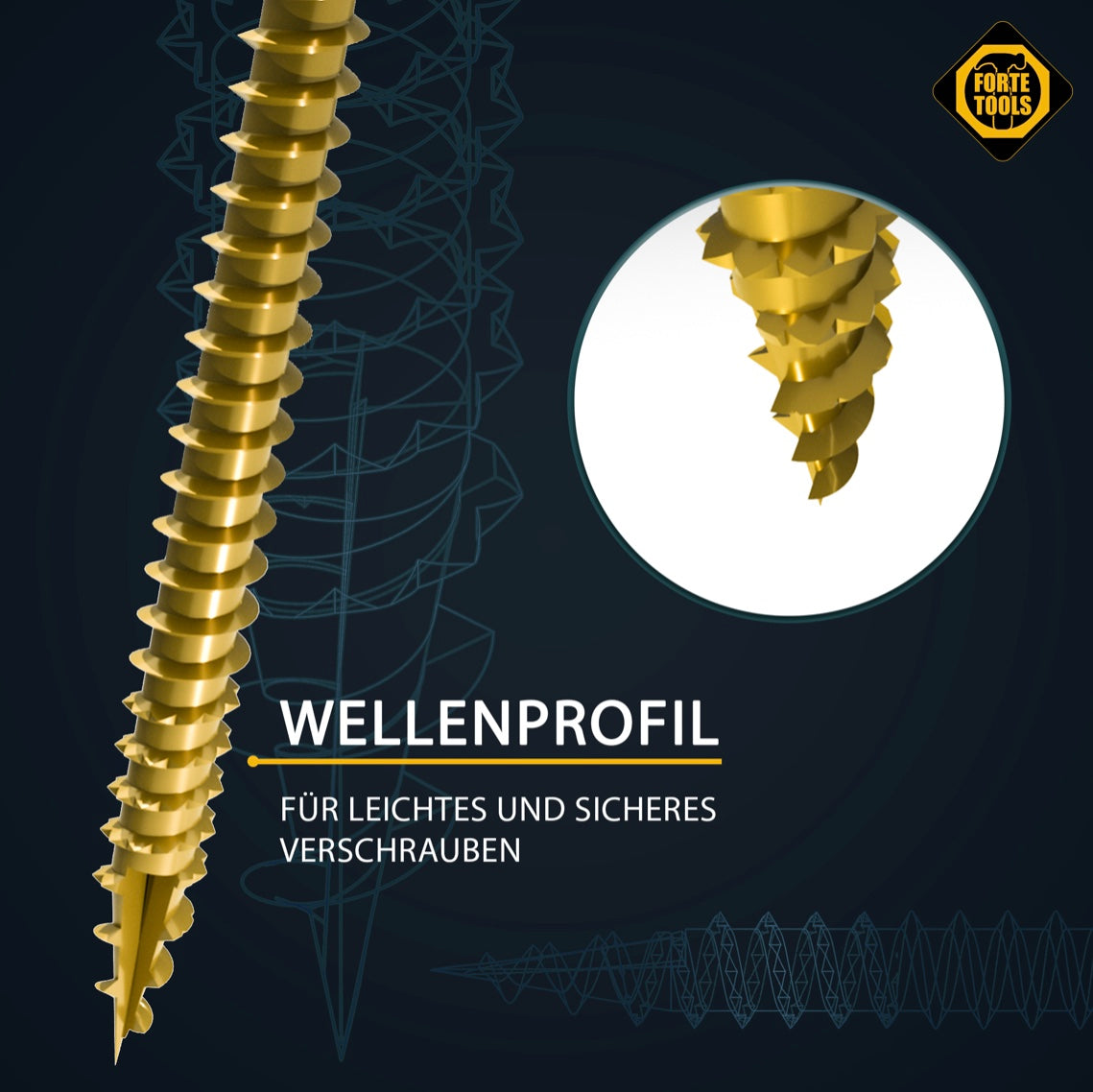 FORTE Tools Universal Holzschraube 5,0 x 70 mm T25 800 Stk. ( 4x 000051399488 ) gelb verzinkt Torx Senkkopf Teilgewinde