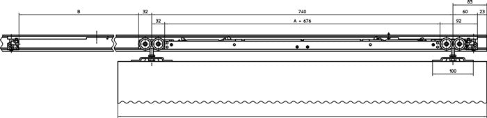 - 2x carrello a rulli con unità di smorzamento, 2x arresto di fine corsa, sblocco con vite di fissaggio, 2x piastra di sospensione standard