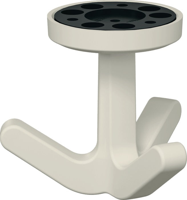 elastisch · nachgebendes Material, weiche Haptik und abgerundete Kanten reduzieren Stoß- und Verletzungsgefahr · dient zum Aufhängen von Kleidungsstücken und anderen Utensilien · drehbarer Haken zum Aufschrauben von unten · Ø Rosette 51 mm · B 80 x H 69 mm · aus Kunststoff (TPU) · Oberfläche matt · Belastungsempfehlung max. 5 kg je Hakenteil · verdeckte Befestigung · TÜV Rheinland geprüft, Zertifizierungsnr. S 6013699