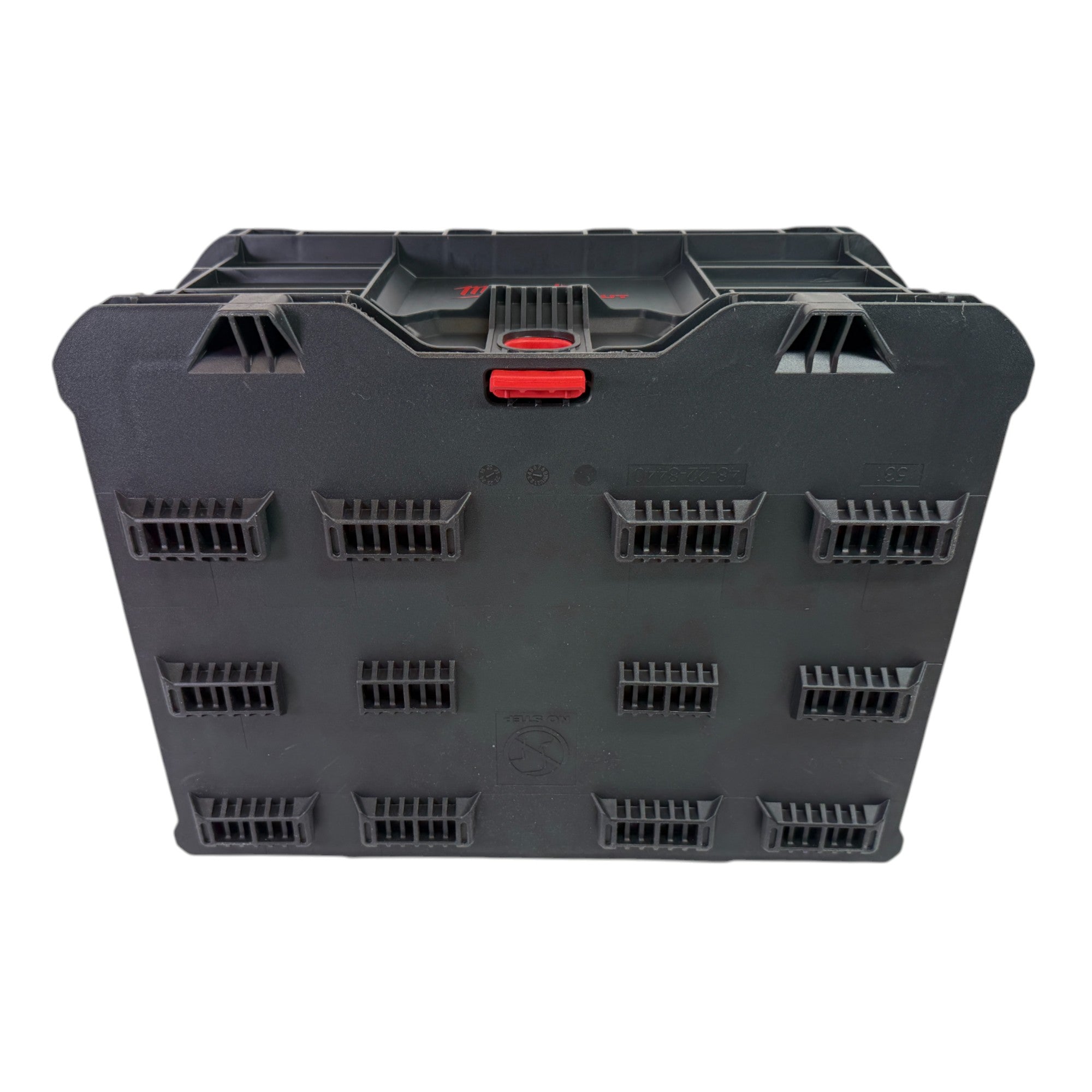 La cassetta portautensili PACKOUT Crate di Milwaukee offre un'ampia gamma di utilizzi e vanta un'impressionante capacità di carico di 22 kg. Grazie al suo design robusto, può essere utilizzata sia in verticale che in orizzontale e offre spazio sufficiente per gli utensili più grandi, come la sega alternativa M18™ o la sega circolare M18™. Il suo interno spazioso consente di trasportare e riporre in modo sicuro anche gli utensili più ingombranti. La valigetta può anche essere facilmente combinata con altri prodotti PACKOUT™, come gli organizzatori, che possono essere semplicemente agganciati alla scatola di trasporto. La cassa PACKOUT Milwaukee fa parte del sistema di stoccaggio modulare PACKOUT™ e consente quindi di espandere e organizzare gli utensili in modo flessibile e personalizzato. Un elemento indispensabile per gli artigiani che danno priorità all'efficienza e all'ordine.