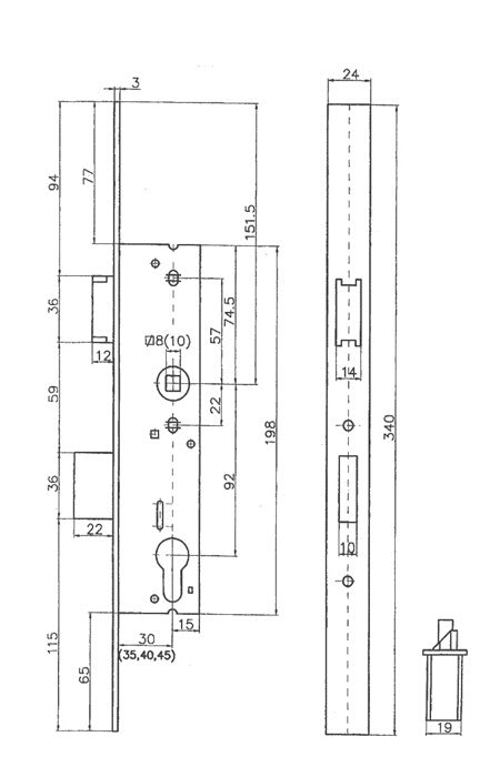 Serratura da infilare con telaio tubolare Bever ( 3000251216 ) PZW 24/35/92/10 mm DIN catenaccio destro/sinistro corsa 22 mm 340 mm