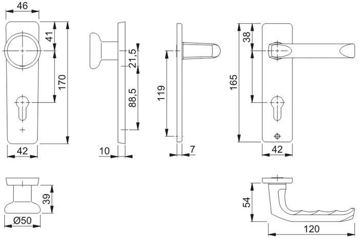 Set di piastre corte HOPPE London 54/227K/202KP/AP/113 Alluminio F1 ( 3000252236 )