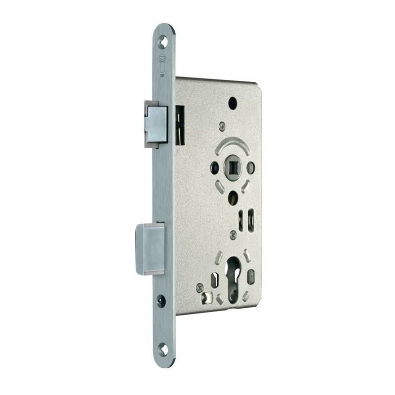Versione PZW - secondo DIN 18251-1 classe 3 - serratura chiusa su tutti i lati - a 2 giri - con commutazione - arrotondata - lunghezza avancorpo 235 mm - distanza 72 mm - quadro 8 mm - scrocco e catenaccio in zinco pressofuso - scrocco con smorzamento del rumore - senza frontale