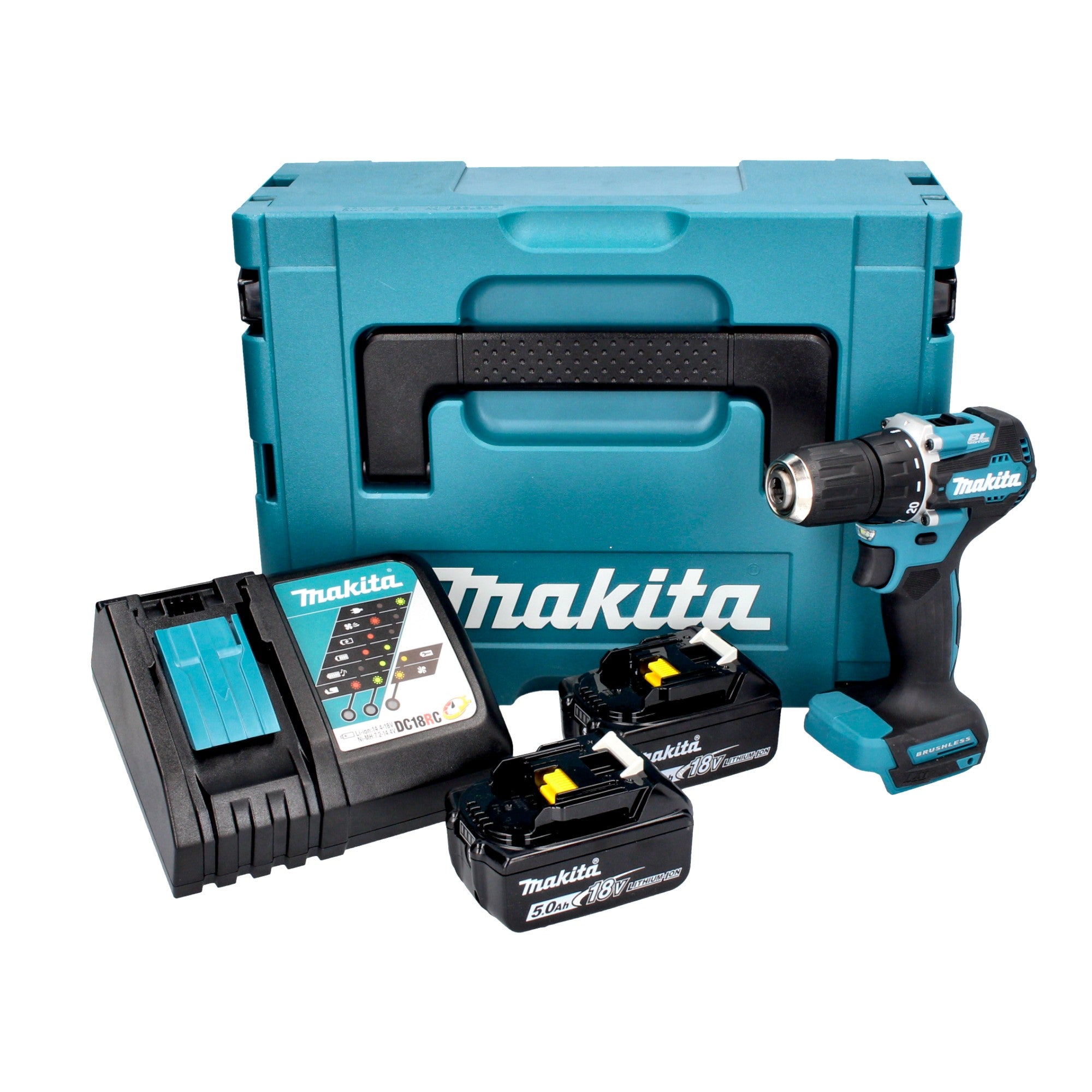 Trapano avvitatore a batteria Makita DDF 487 RTJ 18 V 40 Nm brushless + 2x batteria ricaricabile 5,0 Ah + caricabatterie + Makpac