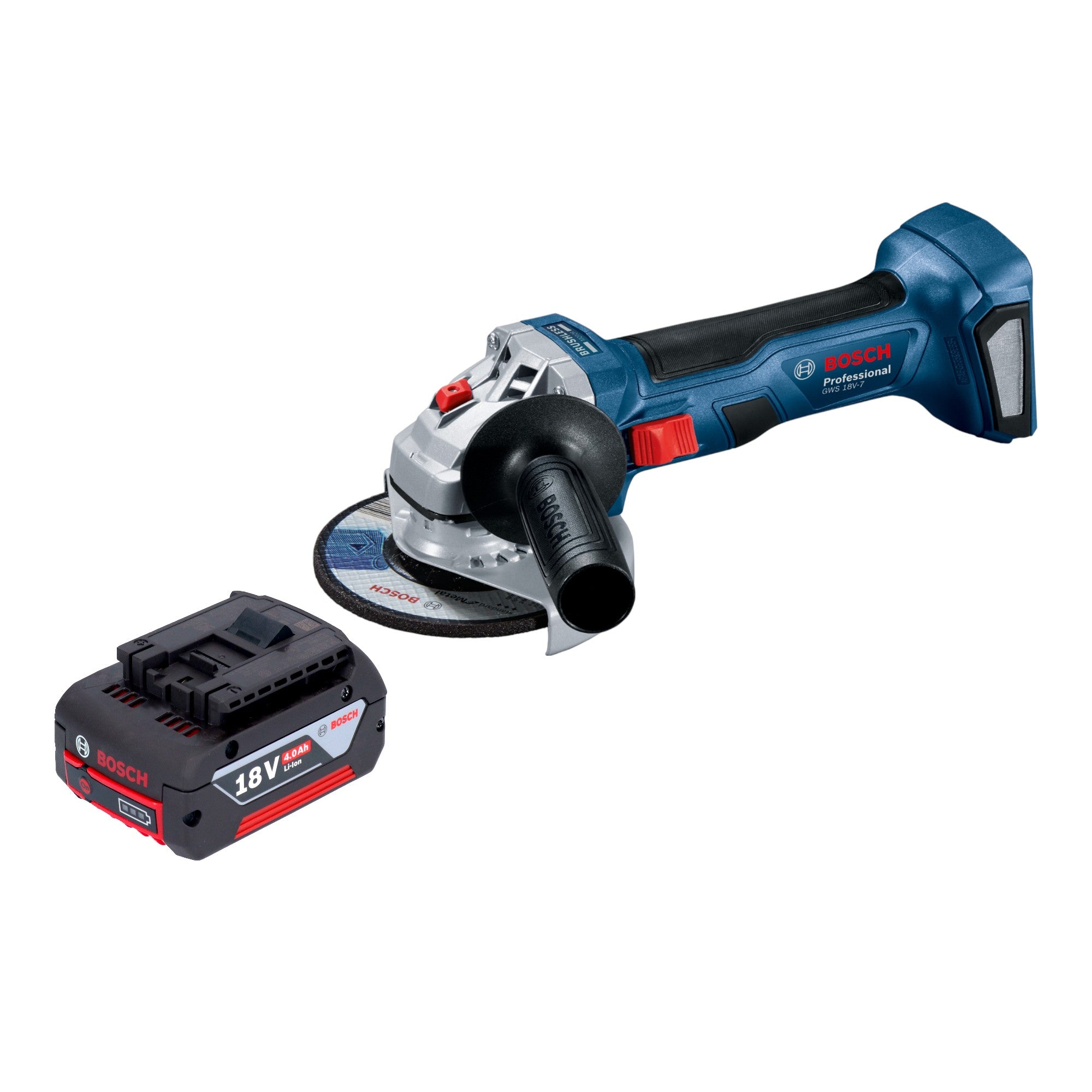 Akumulatorowa szlifierka kątowa Bosch GWS 18V-7 Professional 18 V 115 mm bezszczotkowa + 1x akumulator 4,0 Ah - bez ładowarki