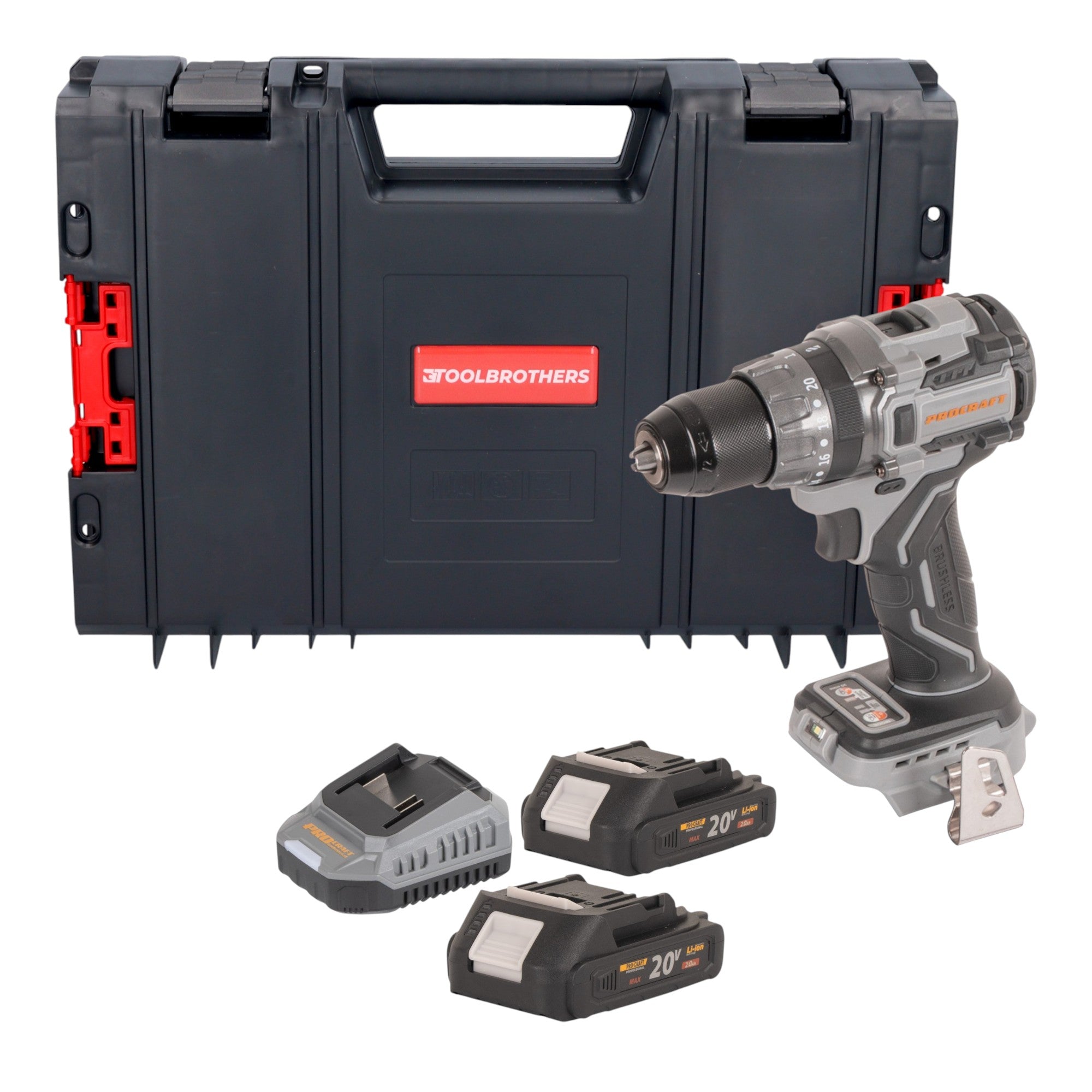 Akumulatorowa wiertarko-wkrętarka Procraft CD20Abb 20 V 85 Nm + 2x akumulator 2,0 Ah + ładowarka + walizka narzędziowa RHINO