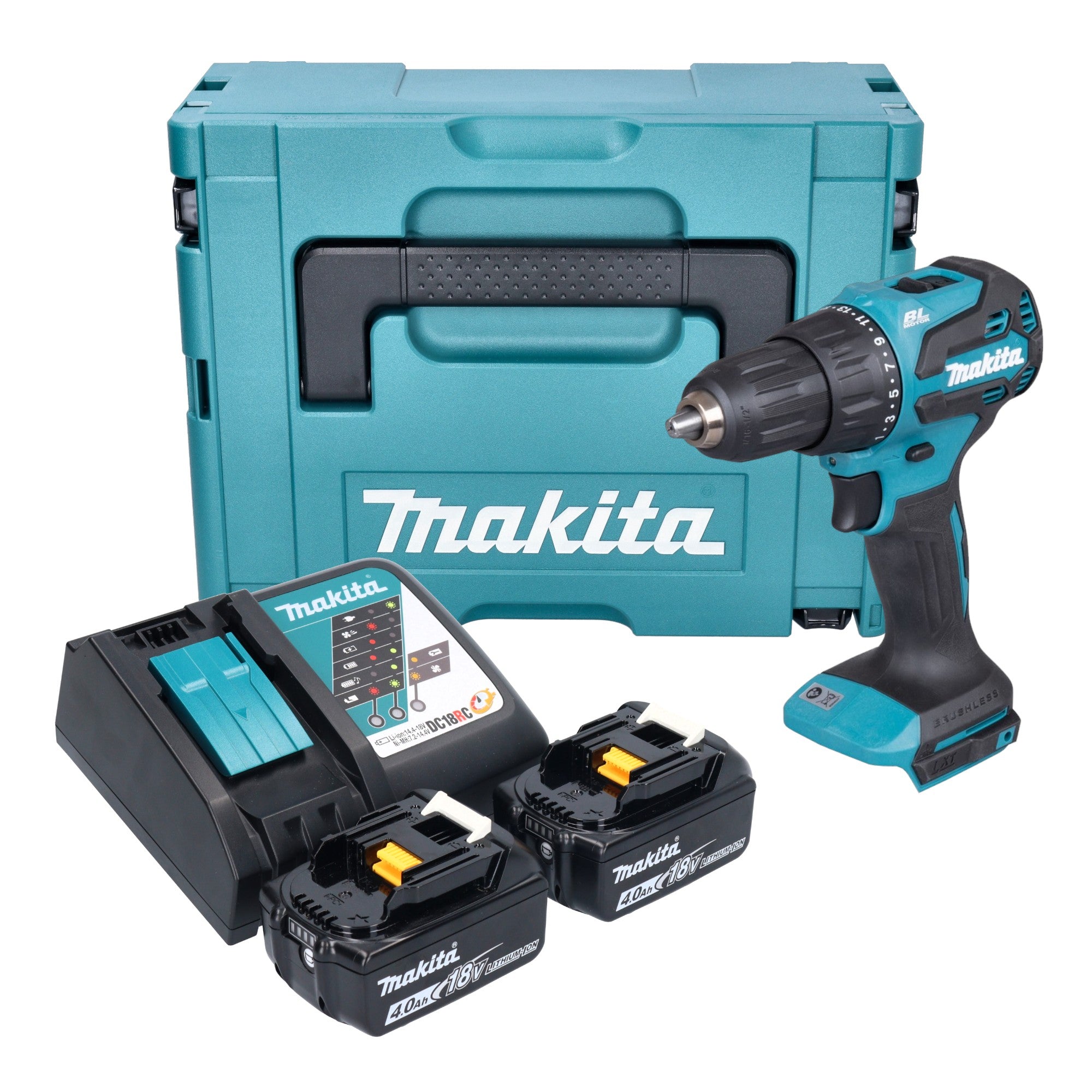 Akumulatorowa wiertarko-wkrętarka udarowa Makita DHP 490 RMJ 18 V 65 Nm bezszczotkowa + 2x akumulator 4,0 Ah + ładowarka + Makpac