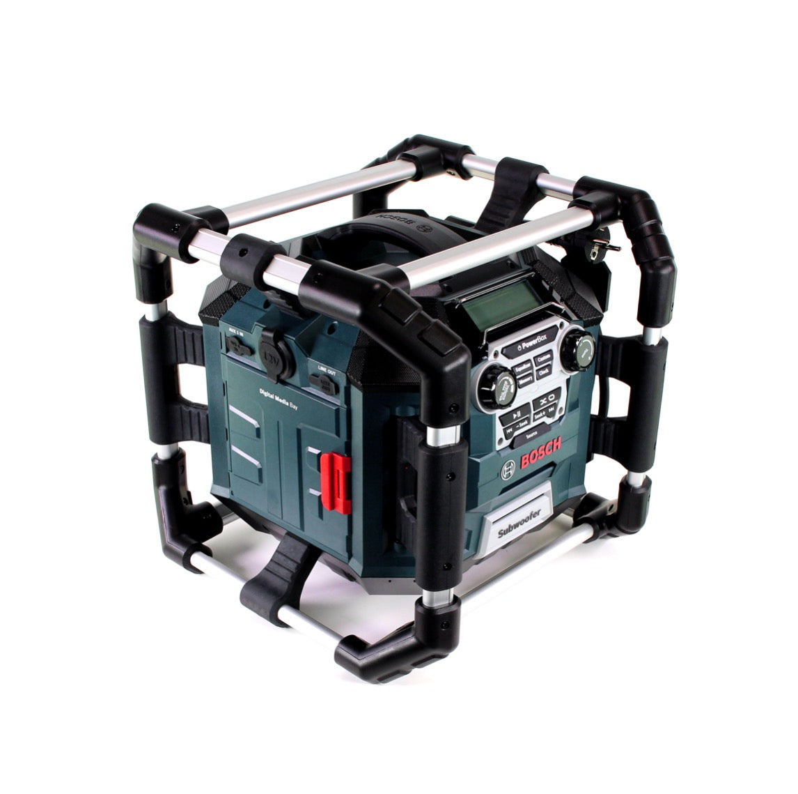 Der Bosch GML 20 Baustellenradio 14,4 - 18V ist durch den Rundum-Schutz extrem robust. Dank dem Feder gelagerten Aluminiumrahmen ist er auch nach einem 3 m Fall voll funktionsfähig. Staub- und Spritzwasser geschützt ist der Baustellenradio ebenfalls. Durch seine starken 20 Watt und seine integrierten Subwoofer mit 4 Boxen, ist der Bosch GML 20 unschlagbar und hat einen Rundum-Sound für Radio und MP3-Wiedergabe. Er beinhaltet variable Anschlussmöglichkeiten ( USB, SD, 2x Aux-In, Aux-Out ) für Musikwiedergabe sowie 12 V DC Strombuchse. Dank der Li-Ionen-Akku-Technologie, ist keine Selbstentladung, kein Memory Effekt und keine höhere Energiedichte möglich. Der Bosch GBA 5,0 Ah Akku mit 18 Volt besitzt eine nochmal um 25% längere Laufleistung als das 4,0 Ah Modell (von Bosch). Die verbaute CoolPack-Technologie sorgt für eine bis zu 100% längere Lebensdauer im Vergleich zu Akkus ohne CoolPack. Der Akku ist durch das Bosch flexible Power System kompatibel mit allen Geräten der 18 Volt Klasse. Der Akku ist extrem robust verbaut, wodurch selbst ein Fall aus mehreren Metern Höhe auf harten Boden die Funktionsfähigkeit des Akkus nicht beeinträchtigt. Mit dem neuen Schnellladegerät GAL 1880 CV der Traditionsmarke Bosch sind die Akkus bis zu 50% schneller wieder aufgeladen als mit dem AL 1860 CV. Das Ladegerät arbeitet mit innovativer Active Air Cooling Technologie, welche die Lebensdauer der Akkus maximiert.