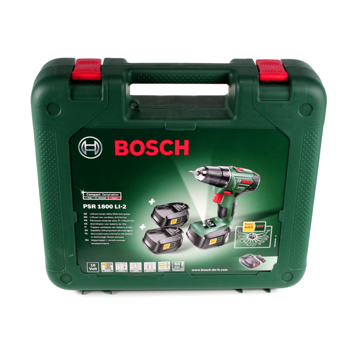 Bosch Heimwerker PSR 1800 Li-2 3X 18 V Akku Bohrschrauber + 26tlg. Bit Bohrer Set + 3 x Akku 1,5Ah + Ladegerät + Koffer