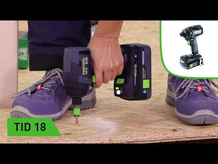 Akumulatorowa wkrętarka udarowa Festool o sprawdzonej jakości: dzięki stycznemu mechanizmowi udarowemu TID 18 z łatwością można wykonywać nawet ciężkie prace związane z wkręcaniem. Uderzenie następuje w kierunku obrotów i nie powoduje odwrotnego momentu obrotowego. Oznacza to, że wkręcanie jest bezpieczne i nie obciąża nadgarstków. Mocny, bezszczotkowy silnik EC gwarantuje wysoką wydajność i wyjątkowo długą żywotność. Dzięki potężnemu momentowi obrotowemu wynoszącemu 180 niutonometrów, TID 18 oferuje wystarczającą moc dla wszystkich wymagań. Trzy poziomy prędkości pozwalają zoptymalizować prędkość do obrabianego materiału. Tryb T jest idealny do wkręcania wkrętów samowiercących: Dzięki najnowocześniejszym czujnikom klucz udarowy rozpoznaje przejście z metalu do drewna - prędkość jest automatycznie dostosowywana. Zintegrowana dioda LED oświetla obszar roboczy. Ergonomiczna i kompaktowa konstrukcja zapewnia niemęczącą i precyzyjną pracę nawet w trudno dostępnych miejscach. Waga wynosząca zaledwie 960 gramów zapewnia wyjątkową równowagę między lekkością i mocą.