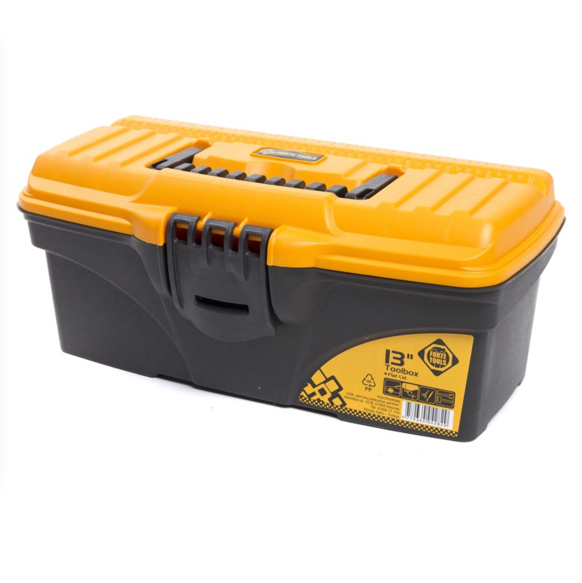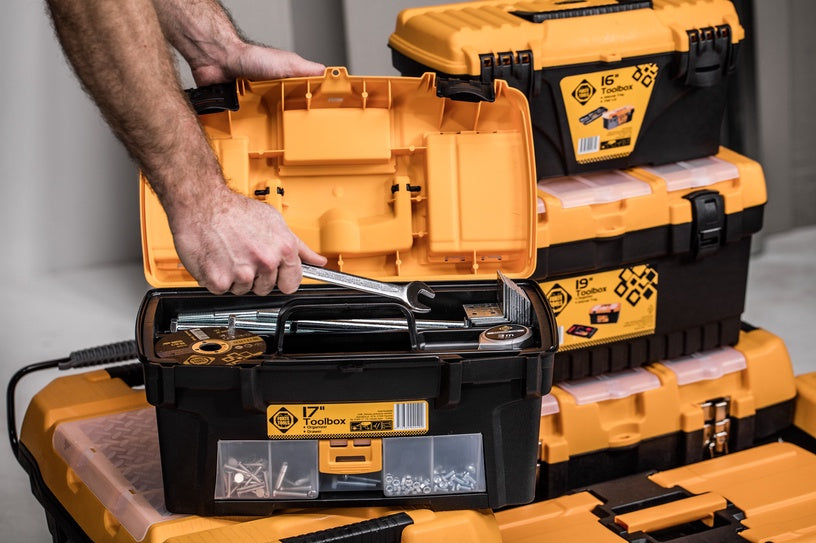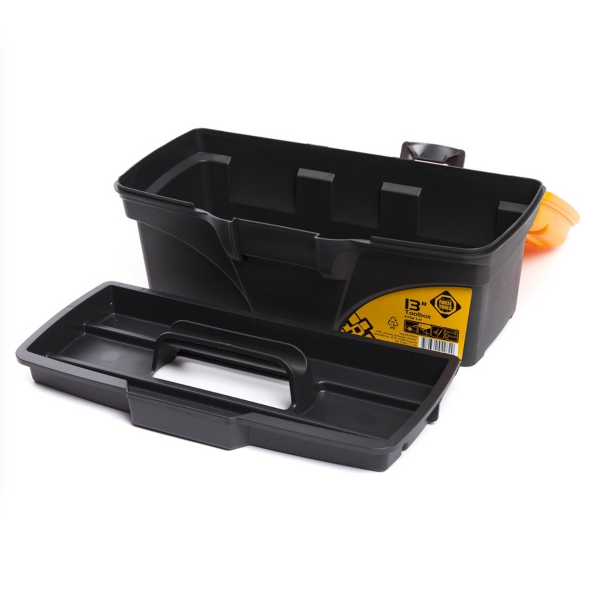 FORTE Tools Toolbox in 16,5x13,6x32 cm, Werkzeugkoffer, Koffer mit Metall-Laschen und internen Organizer, herausnehmbar, abschließbar ( 000051144545 )
