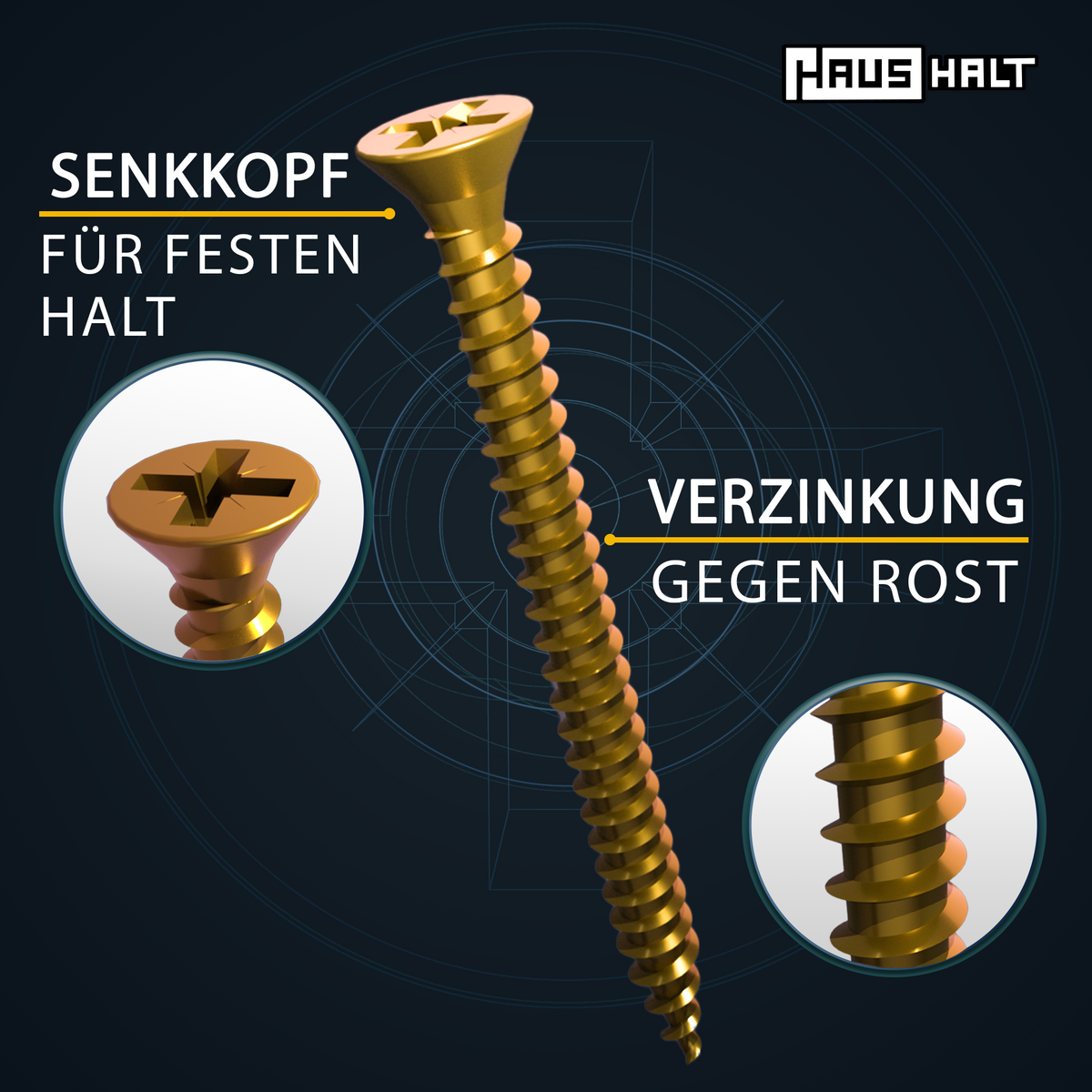 HausHalt Universal Holzbauschraube Holzschraube 4,0 x 35 mm PZ2 2000 Stk. ( 4x 000051371145 ) gelb verzinkt Kreuzschlitz Pozidriv Senkkopf Vollgewinde