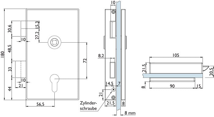 HERMAT Zamek do drzwi szklanych 6053 PZ L - Molina stal nierdzewna matowa ( 3000253947 )