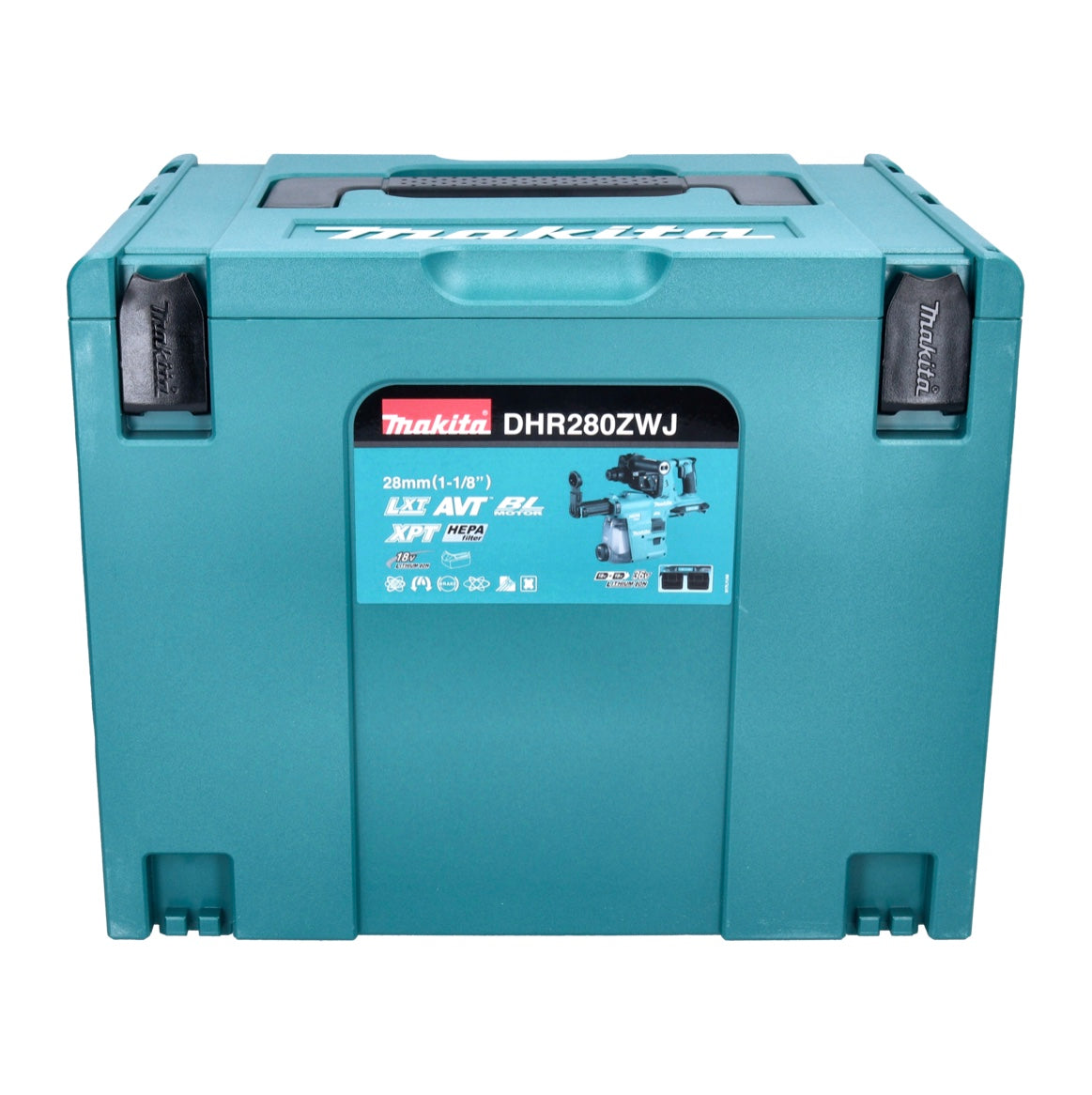Makita DHR 280 RFWJ Akku Bohrhammer 36 V ( 2x 18 V ) 2,8 J SDS Plus Brushless + 2x Akku 3,0 Ah + Ladegerät + DX08 Staubabsaugung + Makpac