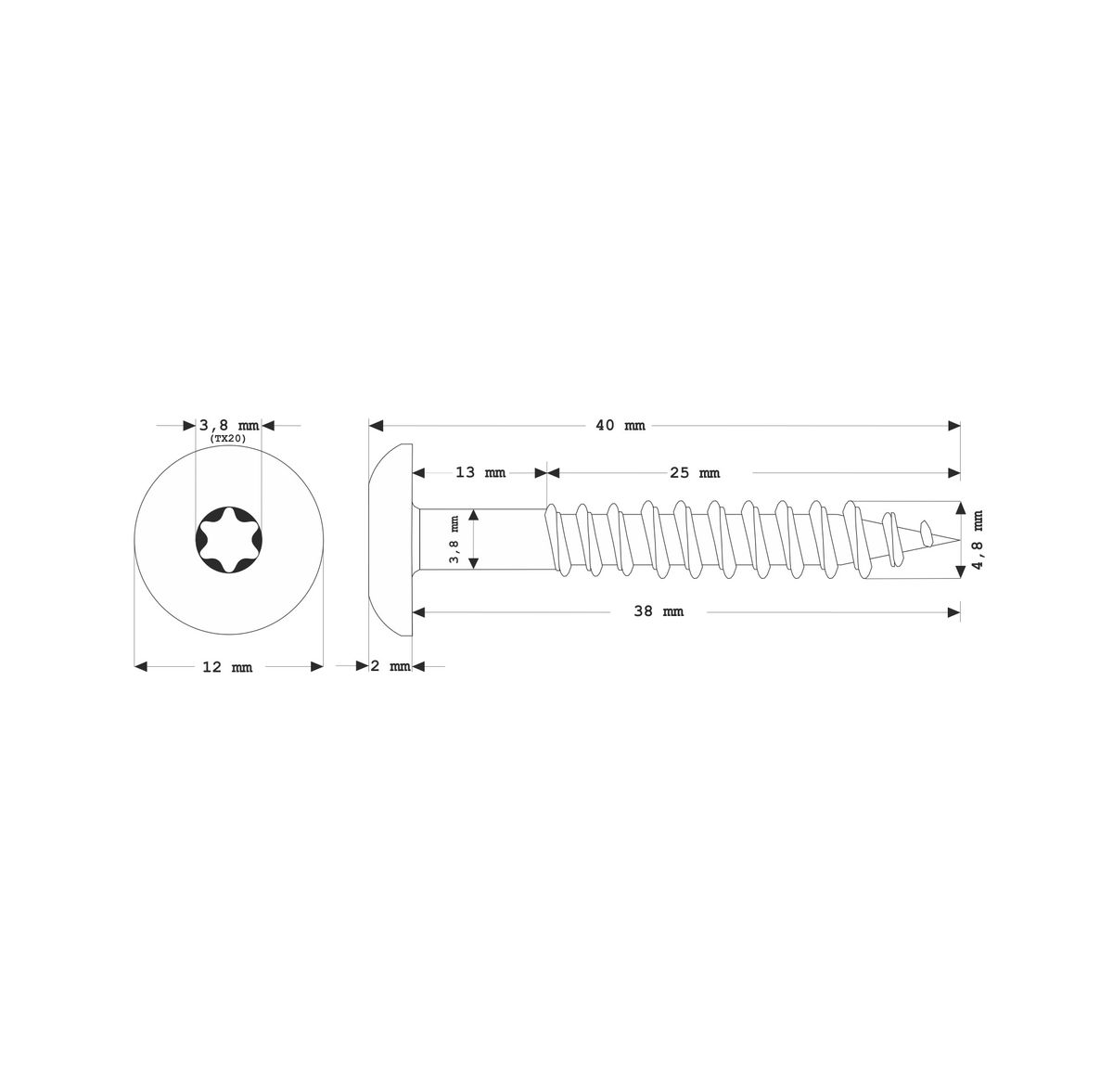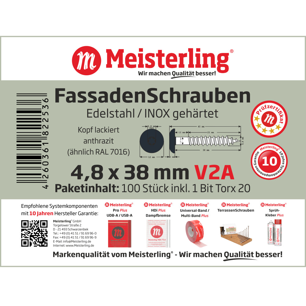 Meisterling Fassadenschrauben 4,8x38 mm 100 Stück ( 010020000211 ) 12 mm Flachkopf anthrazit mit Torx Teilgewinde V2A Edelstahl