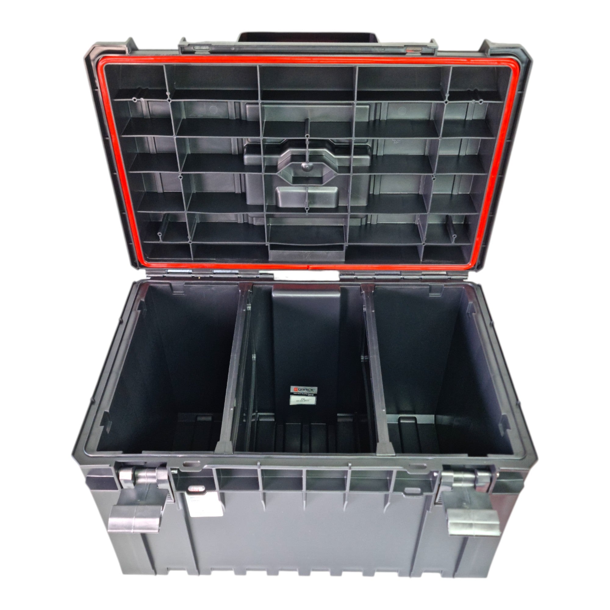 Walizka narzędziowa Qbrick System ONE 450 2.0 Basic o imponującej pojemności 52 litrów oferuje wystarczająco dużo miejsca na duże elektronarzędzia i narzędzia ręczne. Wewnątrz dwie regulowane przegrody zapewniają optymalną organizację i przejrzystość. Dzięki elastycznemu uszczelnieniu walizka jest w pełni chroniona przed wnikaniem pyłu i wody zgodnie z normą IP66, co czyni ją idealną do użytku w wymagających środowiskach pracy. Pokrywa Basic posiada funkcjonalne, niestandardowe wycięcie, które oferuje dodatkowe możliwości zastosowania. Wzmocniona konstrukcja pokrywy i korpusu zapewnia wysoką nośność do 50 kg i może wytrzymać nacisk 120 kg, dzięki czemu obudowa może być również używana jako solidna platforma robocza. Wersja 2.0 linii produktów ONE charakteryzuje się jeszcze bardziej stabilną konstrukcją i oferuje elastyczne opcje rozbudowy dzięki adaptacji do wkładek gwintowanych M8, aby spełnić indywidualne potrzeby użytkownika.