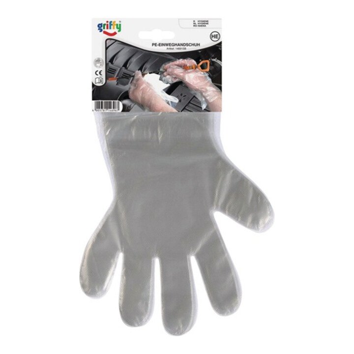 Kat. I - materiał: polietylen - folia ze zgrzewem - młotkowane - bezszwowe - można zakładać obustronnie - w praktycznym opakowaniu samoobsługowym - na etykiecie kartonowej SB po 20 szt. - Zastosowanie: do prac w branży sprzątającej, rękawice na stacjach benzynowych, w kuchniach i stołówkach, piekarniach, w branży motoryzacyjnej i lakierniczej, w salonach fryzjerskich.