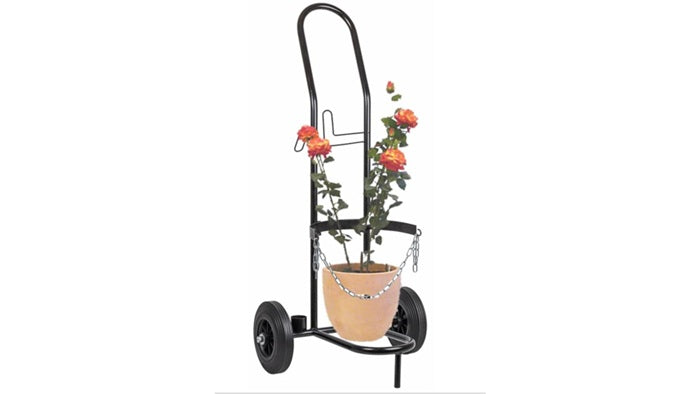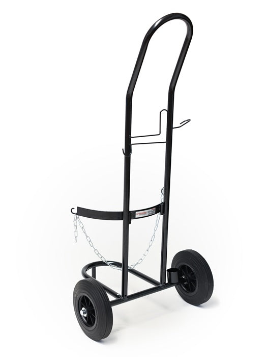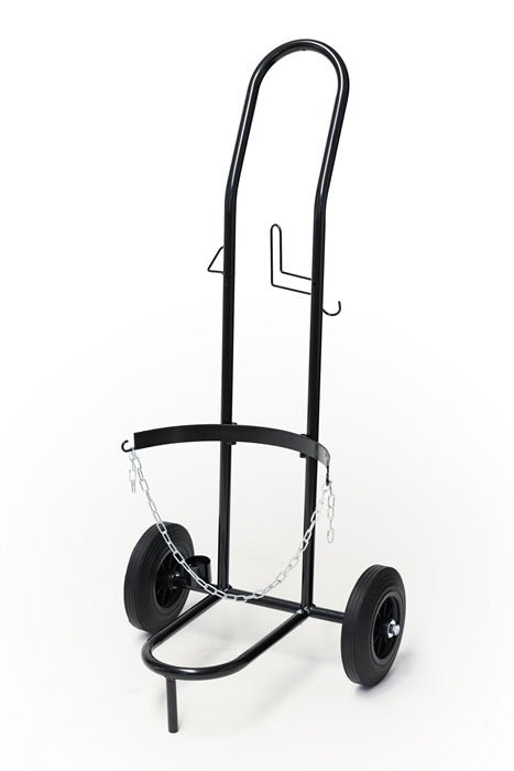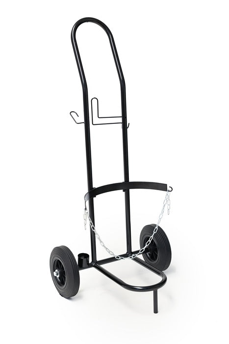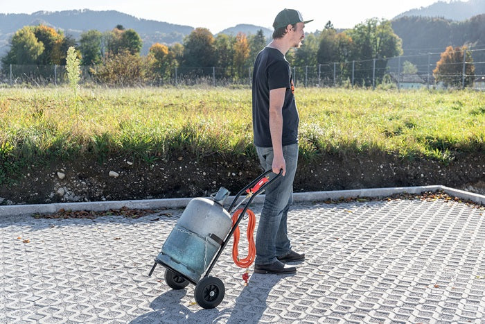 z praktycznymi uchwytami na wąż gazowy i palnik - regulowany łańcuch do zabezpieczenia butli - solidne koła z oponami z pełnej gumy