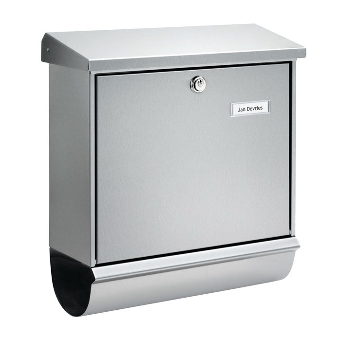 wykonana ze stali nierdzewnej z dużą ilością miejsca na listy, katalogi i gazety - naturalna, ręcznie przecierana stal nierdzewna - z ogranicznikiem otwarcia dla łatwego i bezpiecznego wyjmowania poczty - z oświetleniem wewnętrznym - format wkładki DIN C4 - zestaw (39130 Ni) składa się ze skrzynki na listy z zamontowaną skrzynką na gazety, otwartą z obu stron