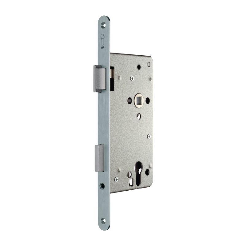 wersja PZW - obudowa zamka zamknięta ze wszystkich stron - 2-obrotowy - z przełącznikiem - czoło srebrne - długość czoła 280 mm - rozstaw 65 mm - rozstaw 92 mm - kwadrat 10 mm - zapadka i zasuwa wykonane z cynkowego odlewu ciśnieniowego, niklowane - bez blachy zaczepowej