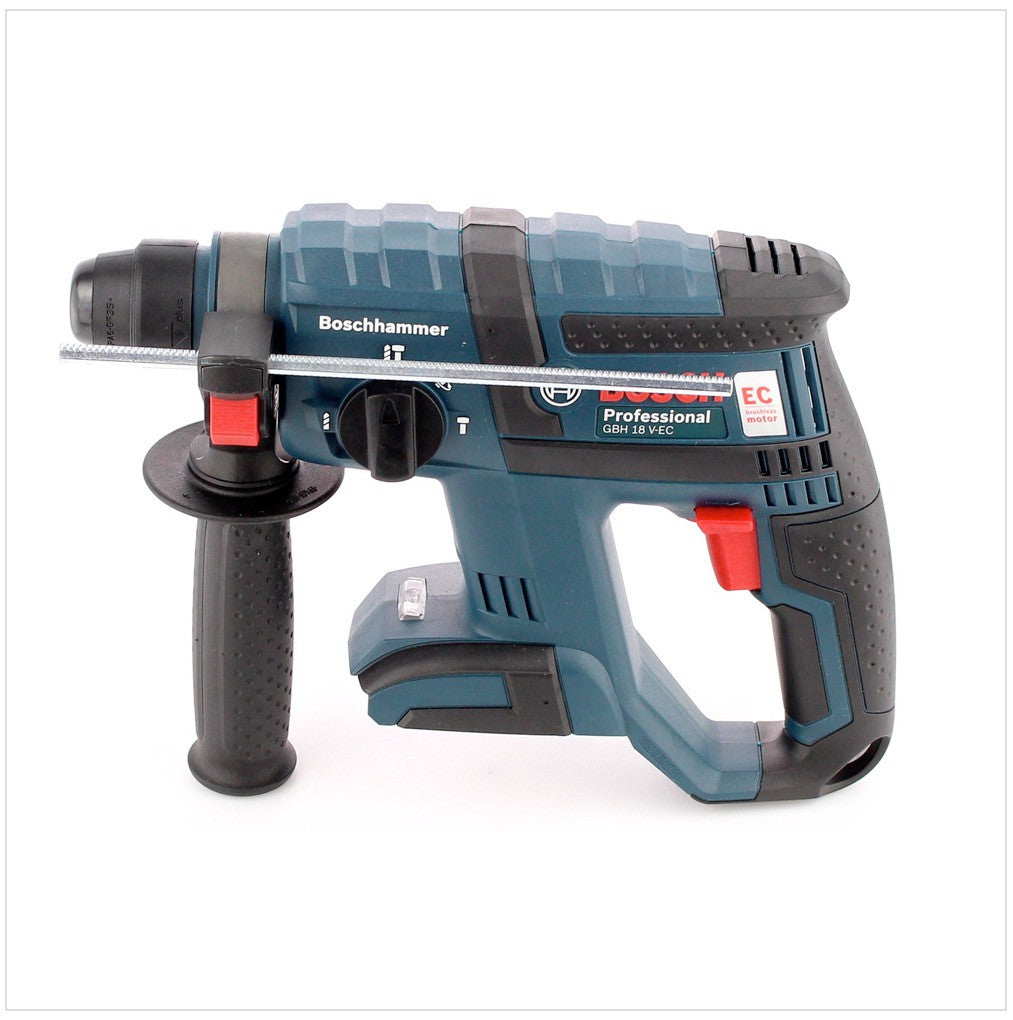 Der Bosch GBH 18 V-EC Bohrhammer ist mit der Bosch Electronic Cell Protection (ECP) und einem bürstenlosen Bosch-EC-Motor ausgerüstet, was für eine lange Lebensdauer des Bohrhammers sorgt. Außerdem ist der GBH 18 V-EC mit der electronic Motor Protection ausgestattet, welche den Motor vor Überlastung schützt. Dank seiner kompakten Bauweise und seinem niedrigem Gewicht ist ein angenehmes und komfortables Arbeiten garantiert. Für optimale Lichtverhältnisse sorgt eine LED am Bosch GBH 18 V-EC.