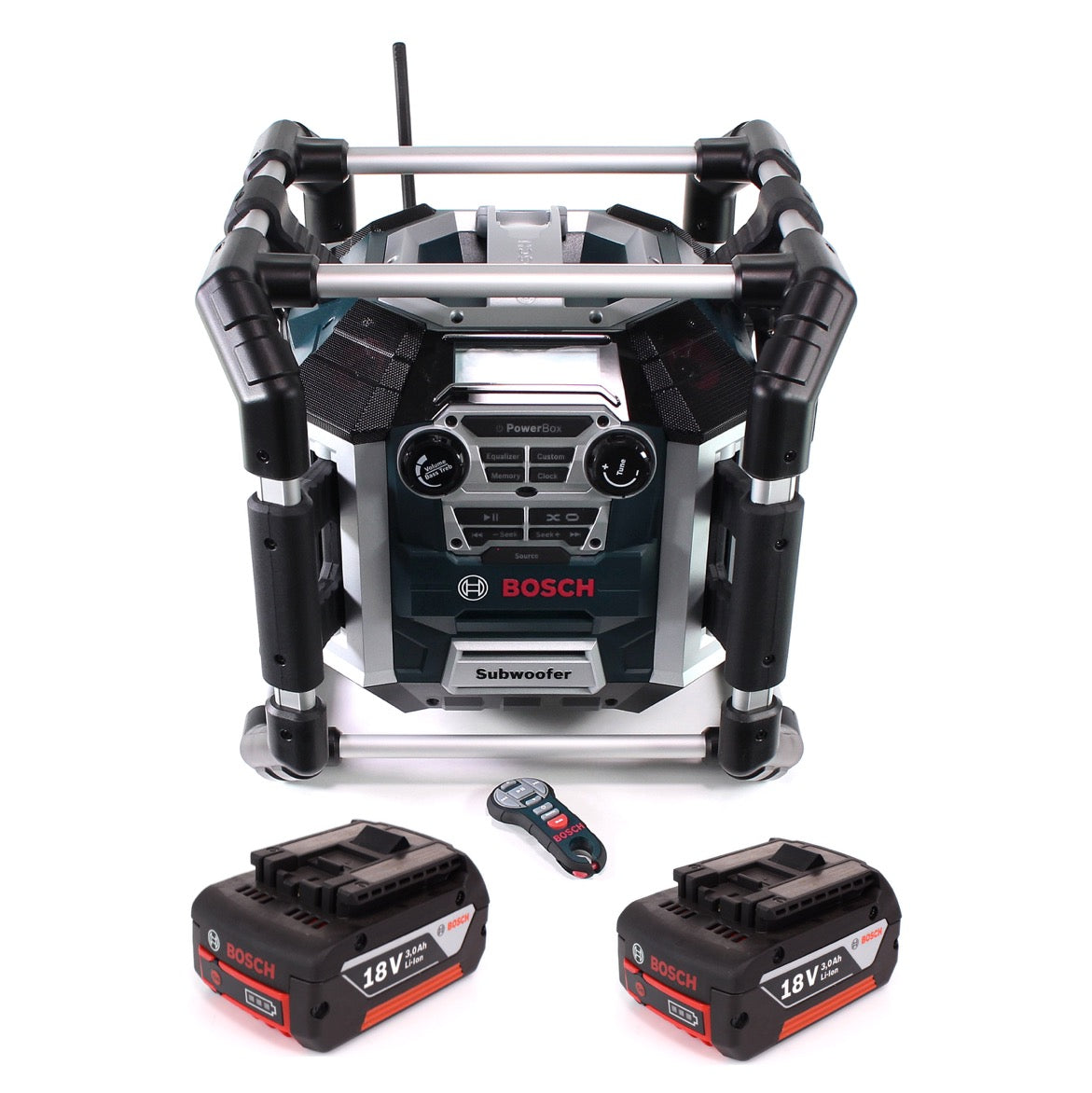 Den Radiolader kennzeichnet eine extreme Robustheit, er bleibt voll funktionsfähig auch nach einem 3 m Fall dank federnd gelagertem Aluminiumrahmen. Dank IP 54 ist der Radiolader gegen Spritzwasser aus jeder Richtung geschützt und staubsicher. Der Radiolader kann mit Standard-Bosch 14,4-18V Akkus oder Strom betrieben werden. Die starken 50 W, der integrierte Subwoofer und die 4 Boxen sorgen für unschlagbarer Rundum-Sound für Radio und MP3-Wiedergabe. Weitere Anschlüsse sind zwei AUX-Eingänge (für z.B. CD-Player, MP3-Player, USB-Stick), ein Steckplatz für SD/MMC Speicherkarten sowie eine 12 V-Steckdose. Der integrierte Akku-Lader kann 14,4-18V Li-Ion-Akkus aufladen. Dank größerer Zellenkapazität besitzt dieser Kompakte Single-Layer-Akku 50 % mehr Laufzeit als vergleichbarer 2,0 Ah-Akku.