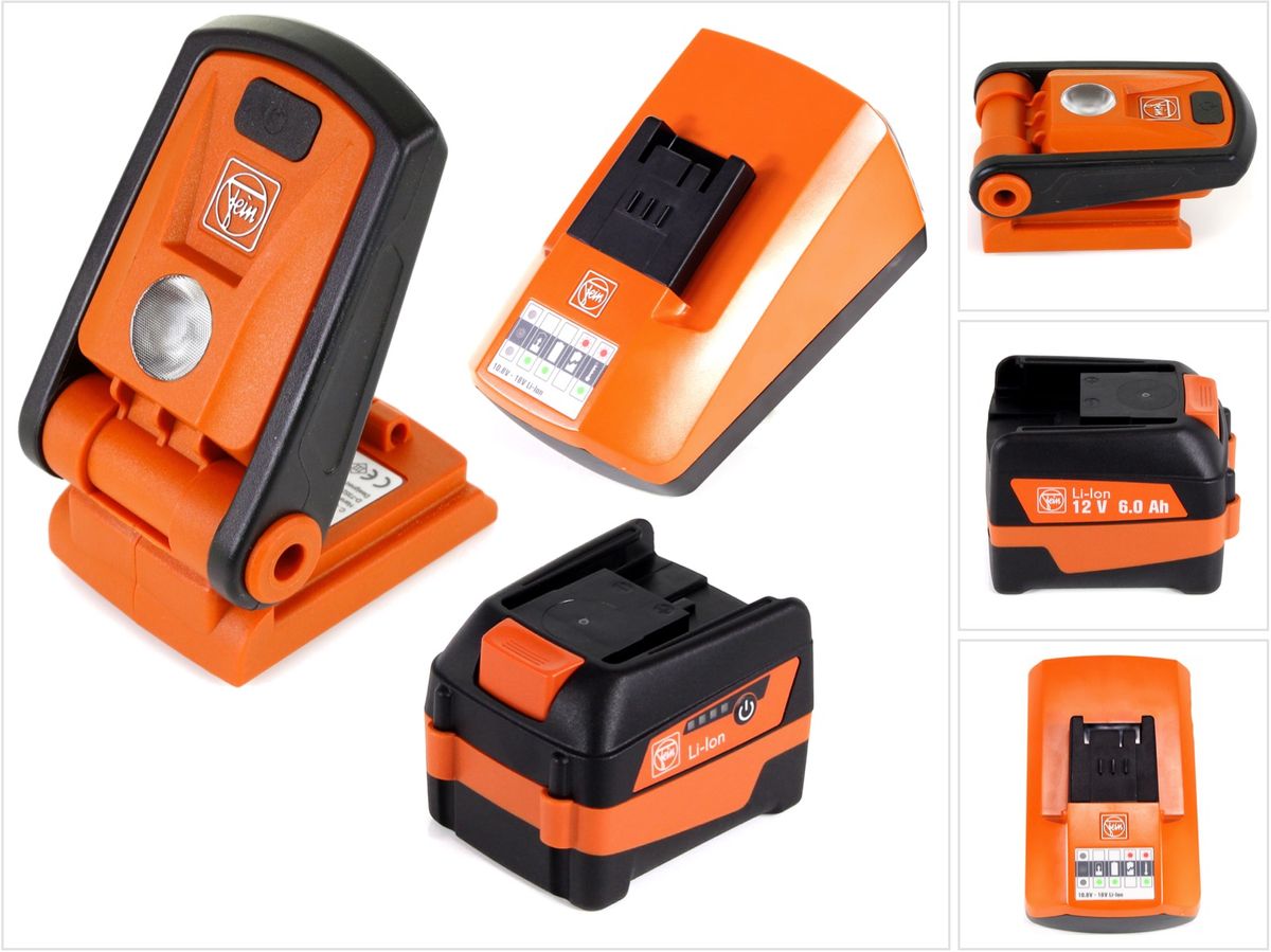 FEIN ALED 12 Akku LED - Lampe 12-18V + 1x Akku 6,0Ah 12V + Schnell Ladegerät ALG 50