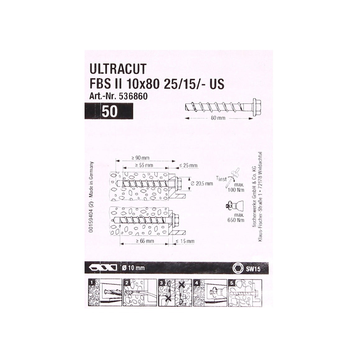 - 1x Fischer ULTRACUT FBS II Betonschrauben 10x80mm 25/15/- 50 Stk  ( 536860 )