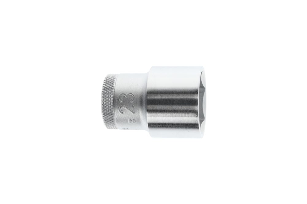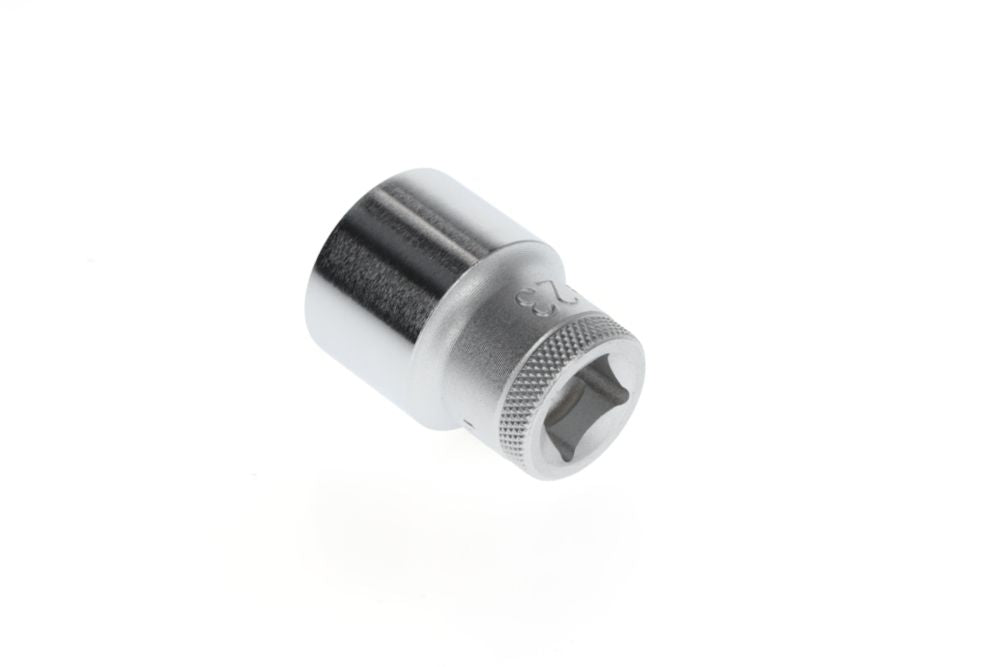 12,5 mm (1/2 ″)-Vierkantantrieb · 6-kant · Vanadiumstahl · verchromt · gerändelt · mit Kugelfangrille · DIN 3124 / ISO 2725-1 Innenvierkantantrieb nach DIN 3120-C 12,5 / ISO 1174