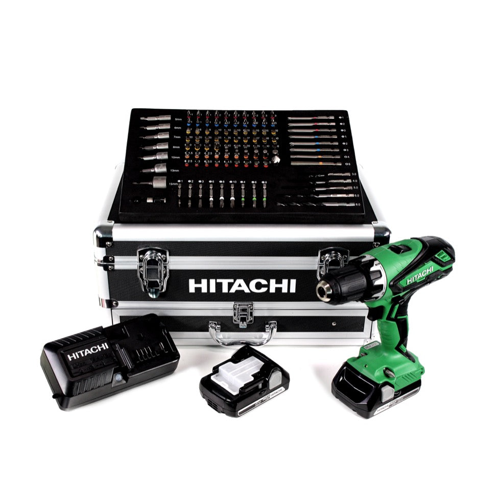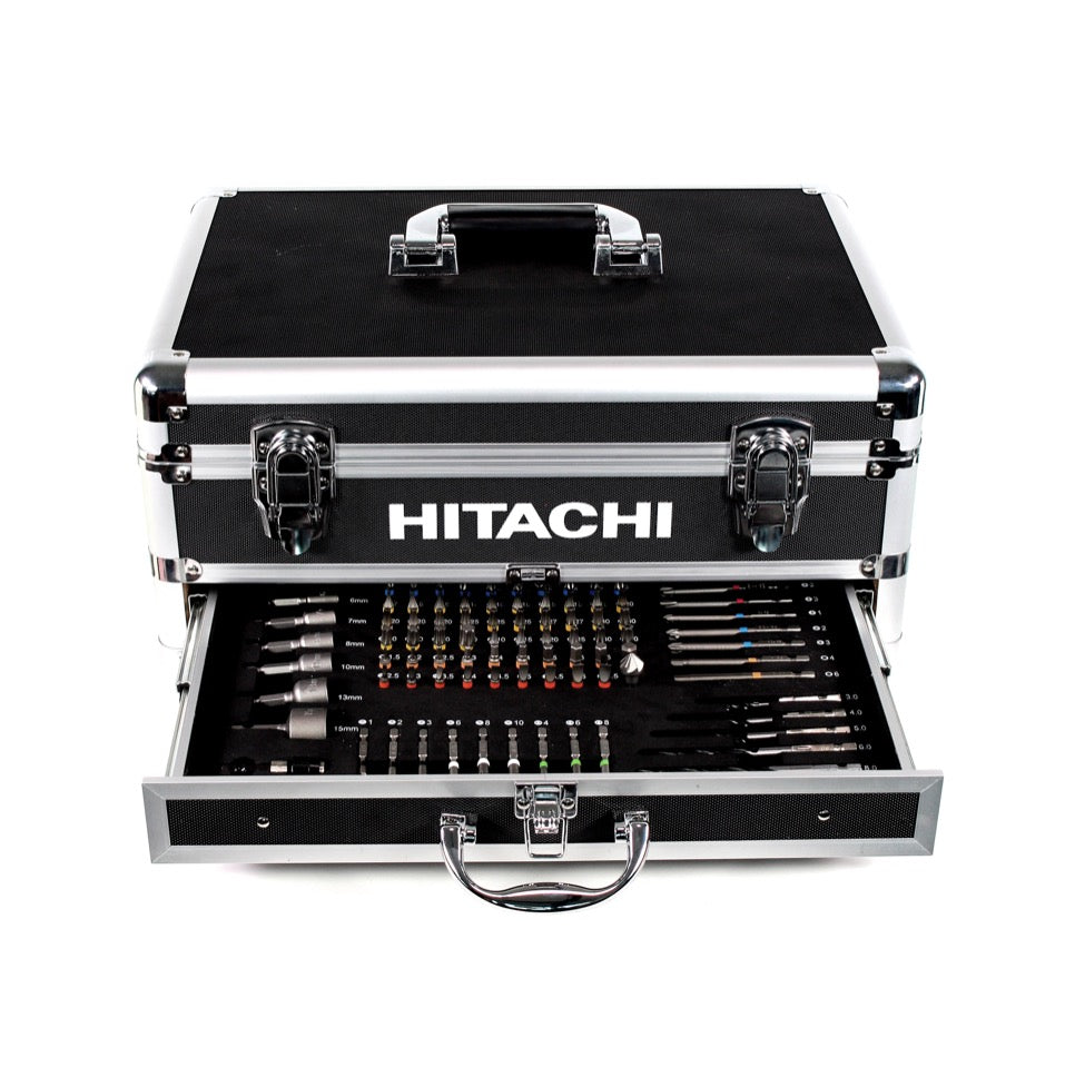 Hitachi KC 18 DJLF 18V Akku Bohrschrauber + 2x 2,5 Ah Akkus mit Ladegerät + 100-teiliges Schraub- und Bohr-Set + hochwertiger Aluminium Transportkoffer