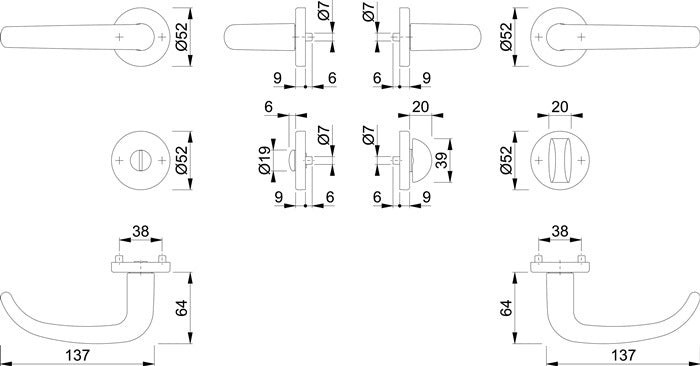 Innentür-Rosetten-Garnitur nach DIN EN 1906 (Gebrauchs-Kategorie Klasse 3) · Türgriffe mit Schnellstift-Verbindung (mit 8 mm Vollstift) für Türstärke 37 - 42 mm · Rosette mit Kunststoff-Unterkonstruktion, Rückholfeder und Stütznocken · Befestigung verdeckt, durchgehend · wechselseitig inkl. Mehrzweckschrauben · Anschlagrichtung DIN links / rechts
