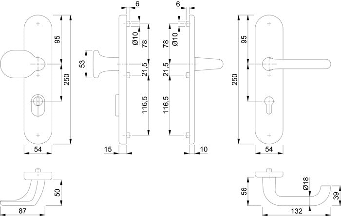 HOPPE Schutzgarnitur Paris 86G/3332ZA/3310/138L Aluminium F1 ( 3000209108 )