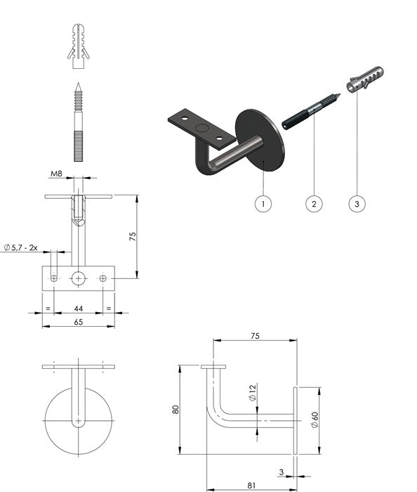 Intersteel Handlaufträger ( 3000210973 ) Edelstahl matt gerade Auflage