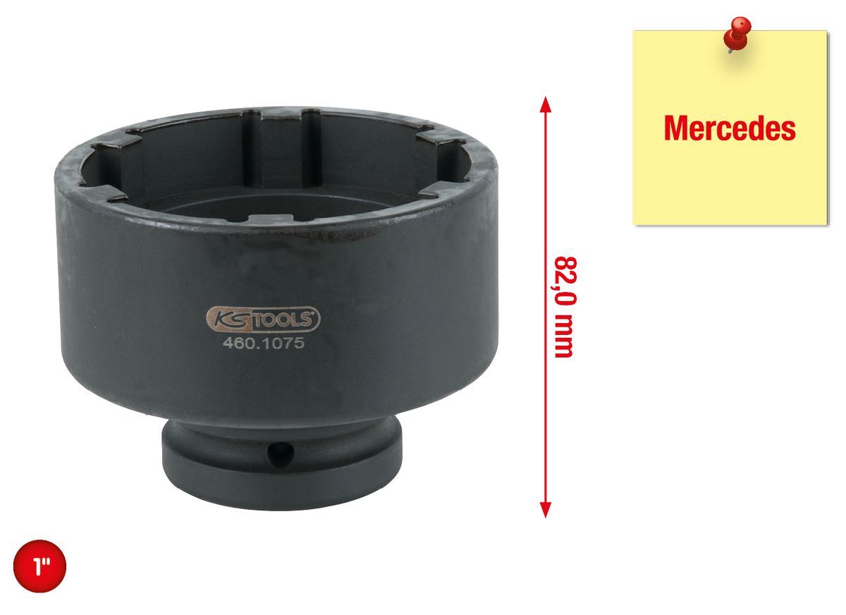KS TOOLS 1" Nutmuttern-Schlüssel mit 6 Zapfen für Mercedes, 86 mm ( 460.1075 )