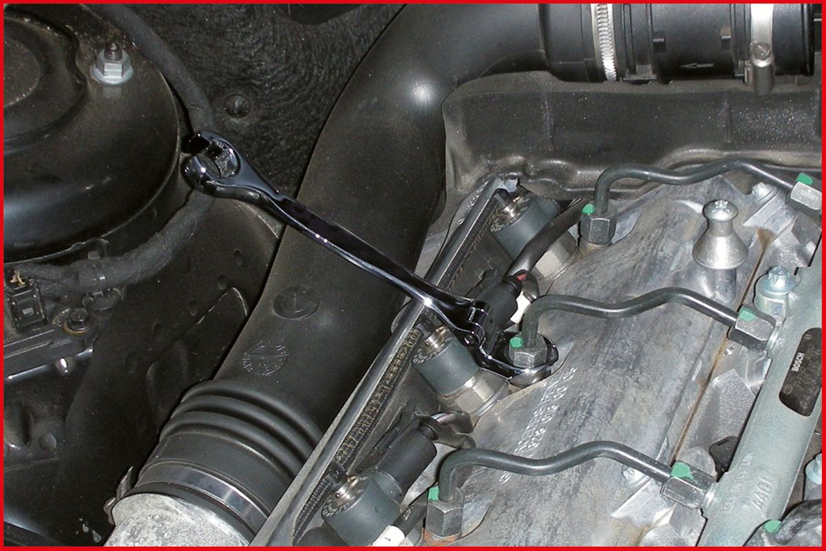 • zur Montage und Demontage der schwer zu erreichenden Einspritz-, Kraftstoff- und Hydraulikleitungen